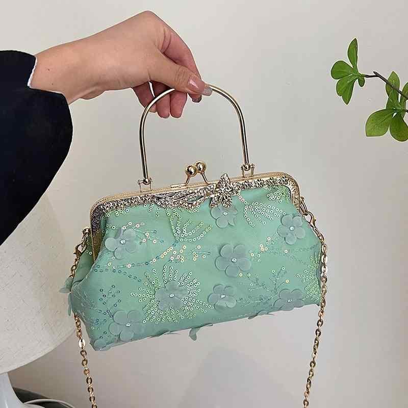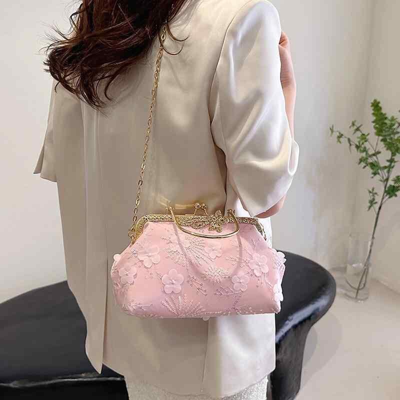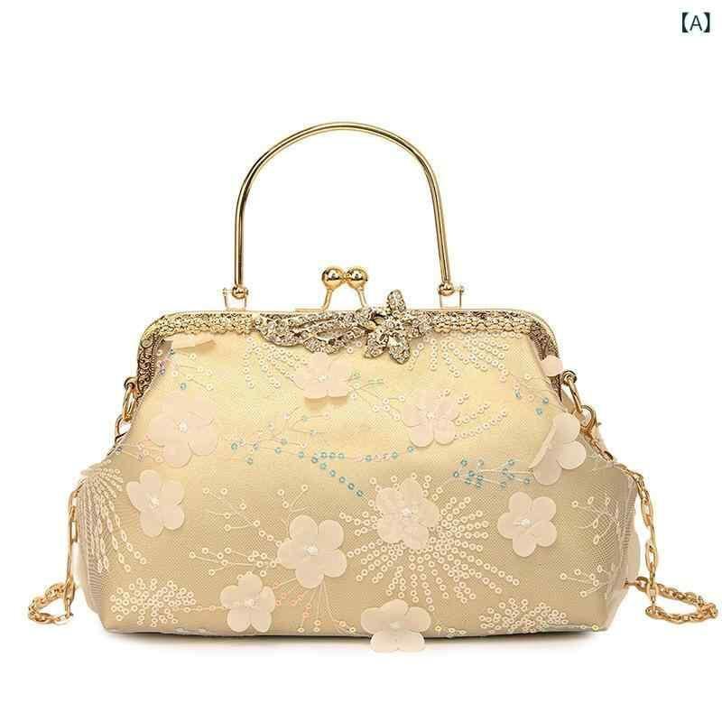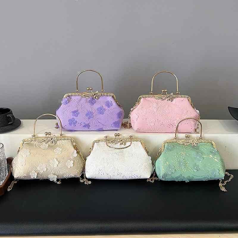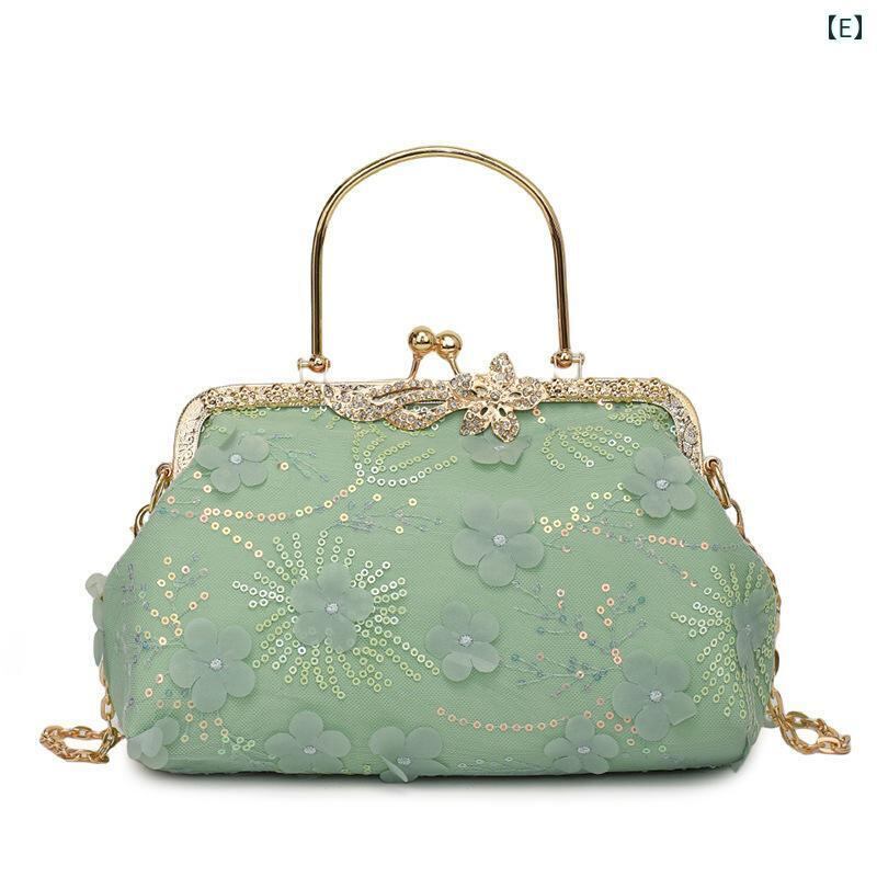 バッグ レディース 女性用 がま口 貝殻型 ハンドバッグ ショルダーバッグ 花柄刺繍 チャイナ風 レトロ 高級感 個性的 普段使い デイリーユース ミドルサイズ