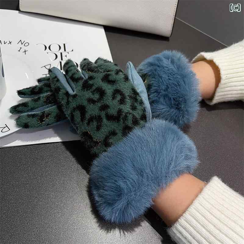 手袋 レディース エレガント かわいい ヒョウ柄 高級感 冬用 防風 あったか 自転車 運転 ドライブ 通勤 通学 フェイクファー 裏起毛 防寒 保温 スマホ対応 グローブ