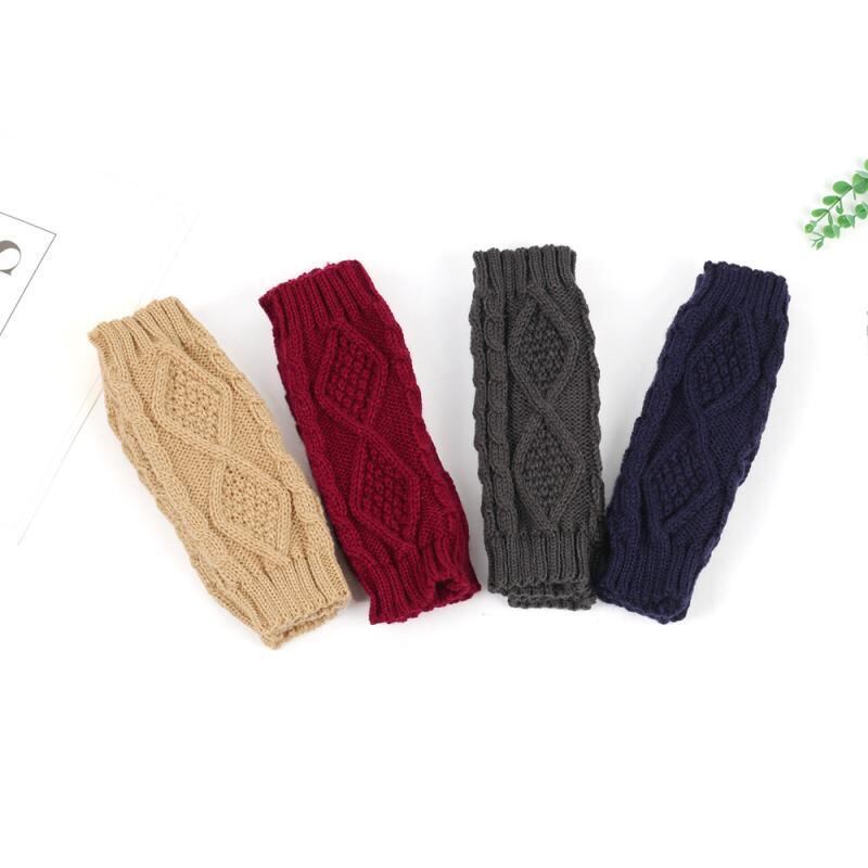 手袋 男女兼用 秋冬 保温 アクリル ケーブル編み ニット 菱形柄 指なし アームウォーマー リストウォーマー 毛糸 フリーサイズ ストリート カジュアル