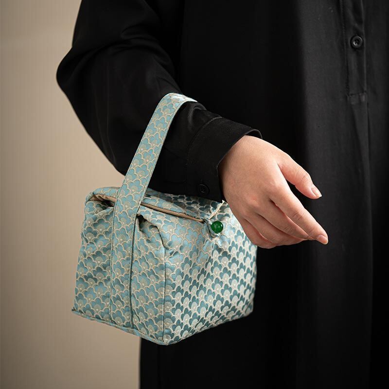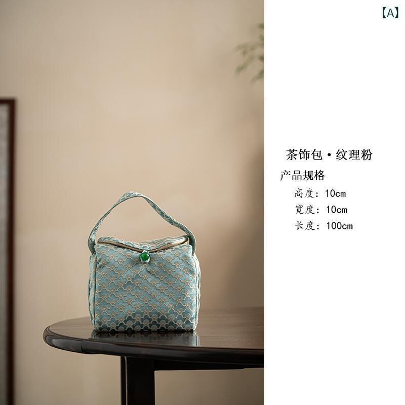 茶器収納ポーチ 文人スタイル 教育用 携帯用 布製 新中式 功夫茶器セット 茶道具アクセサリー 小物入れ 稽古 旅行用 上品な花柄 テクスチャー柄 ファブリックケース
