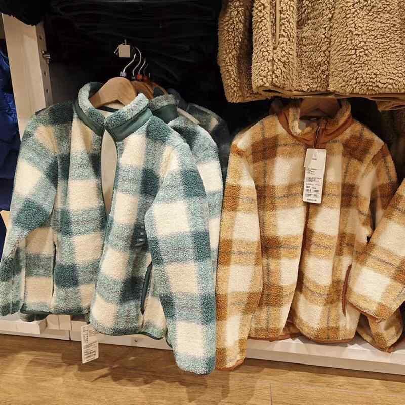 ジャケット キッズ 男の子 女の子 防風 フリース ジップアップ 厚手 秋冬 ボア裏地 チェック柄 スタンドカラー カジュアル 通園 通学 長袖 暖かい