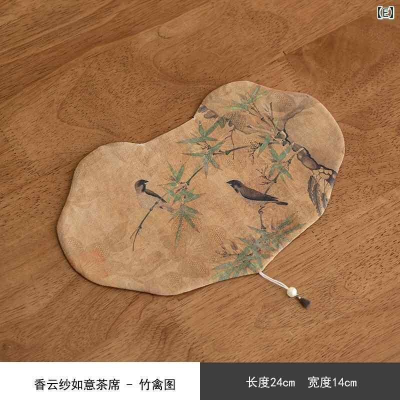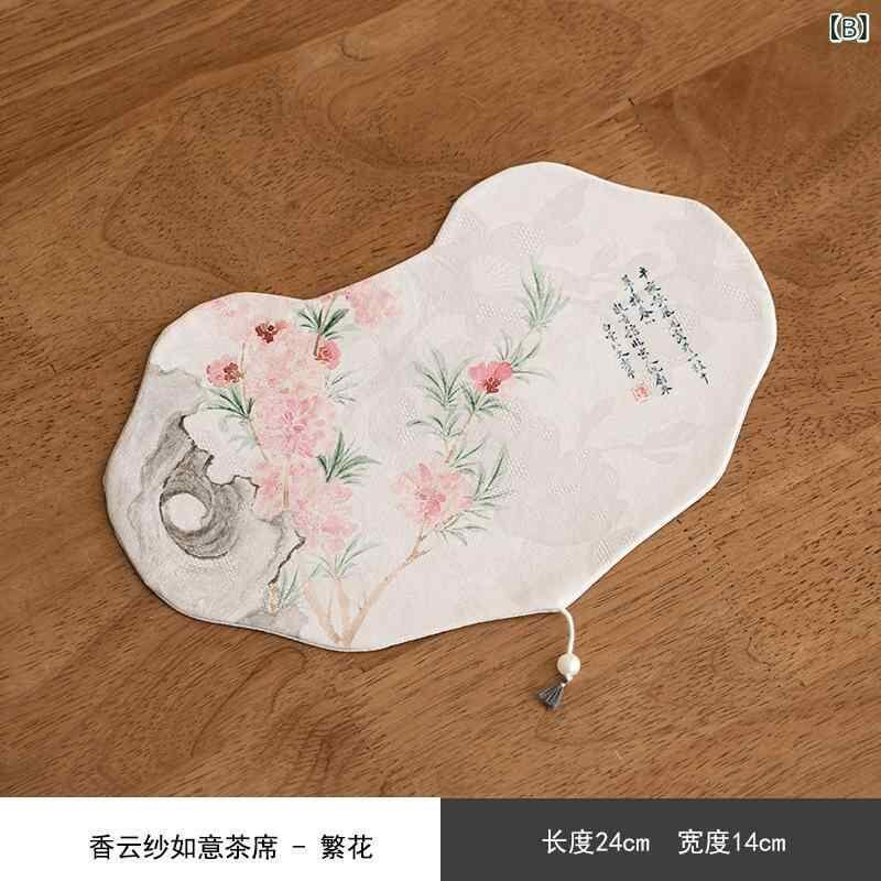 茶席マット 雲紗 ガーゼ 如意柄 吉祥文様 乾泡茶席 新中華風 禅モダン 手作り ファブリック 急須置き 湯呑み置き テーブルウェア 和風