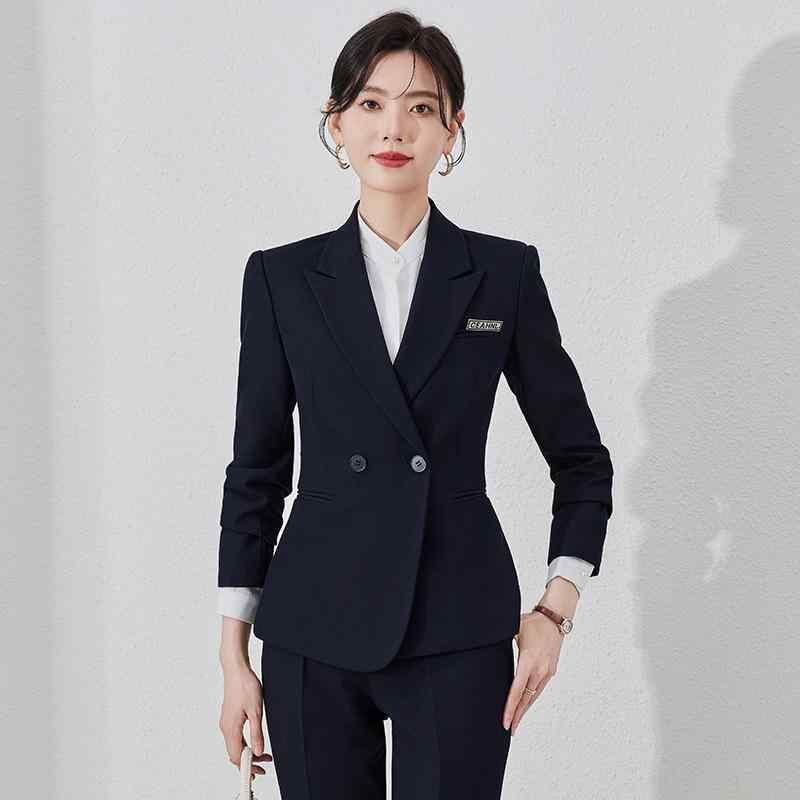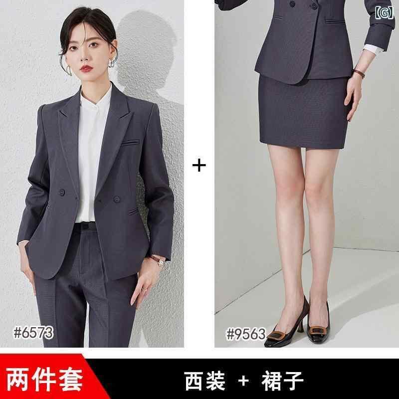 セットアップ レディース スーツ ビジネス フォーマル セレモニー 面接 通勤 オフィス ホテル 事務服 制服 ジャケット パンツ スカート 細身 長袖 秋冬 ポリエステル混 ネイビー ダークグレー ホワイト
