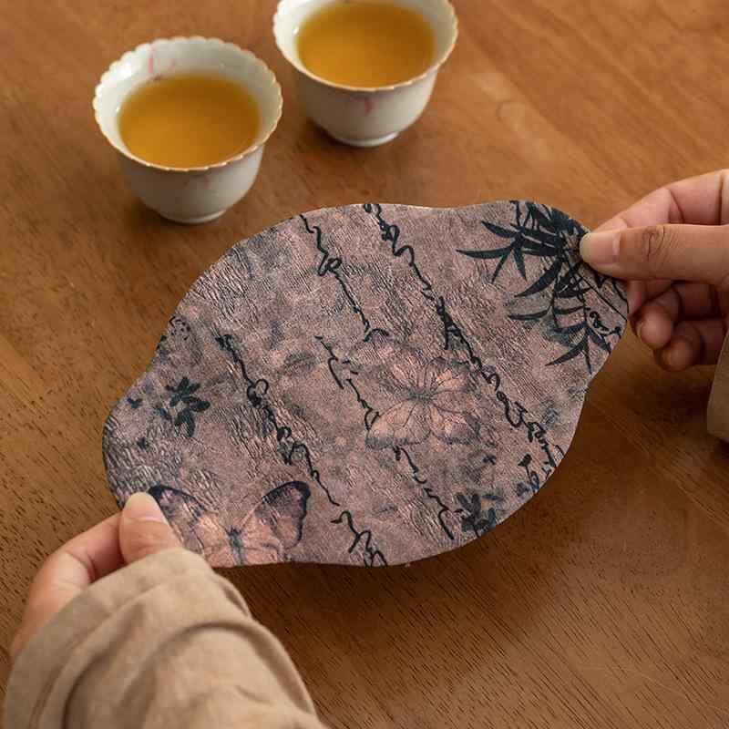 茶席 中国風 禅風 雲紗 蝶柄 小型 ミニ Sサイズ 防水 撥水 断熱 耐熱 茶敷 ティーマット ポットマット 茶卓用 茶道具 小物