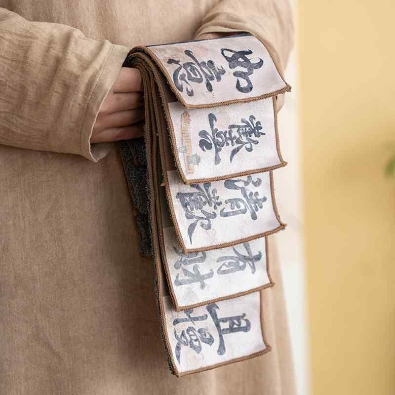 茶器クロス スエード調 新中華風 モダンデザイン 吸水性 速乾 手書き文字入り 茶巾 茶卓マット 茶壺ケア 拭き布 テーブルマット 茶道道具 お点前