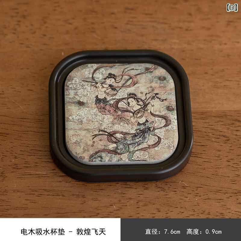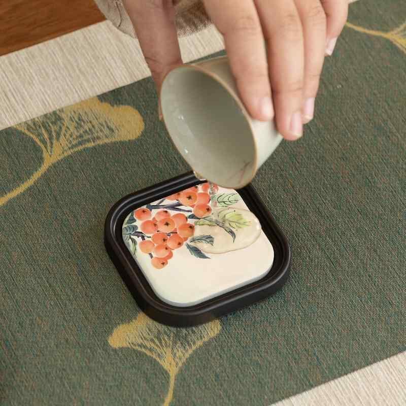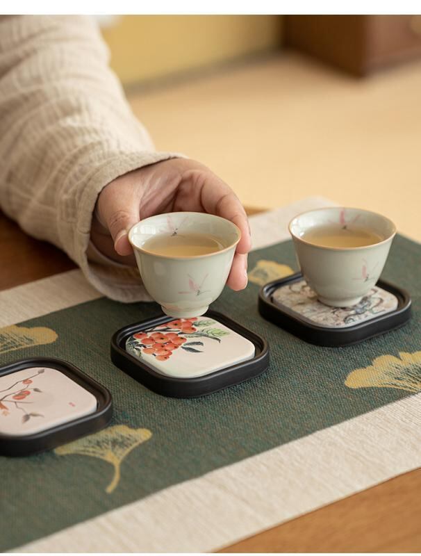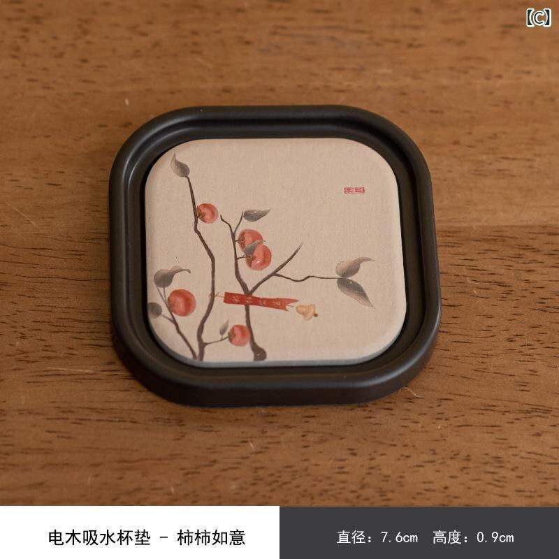 コースター 陶器製 吸水 断熱 新中式スタイル 和モダン 家庭用 ティータイム 中国茶器 茶道 来客用 果実柄 アジアンデザイン 四角