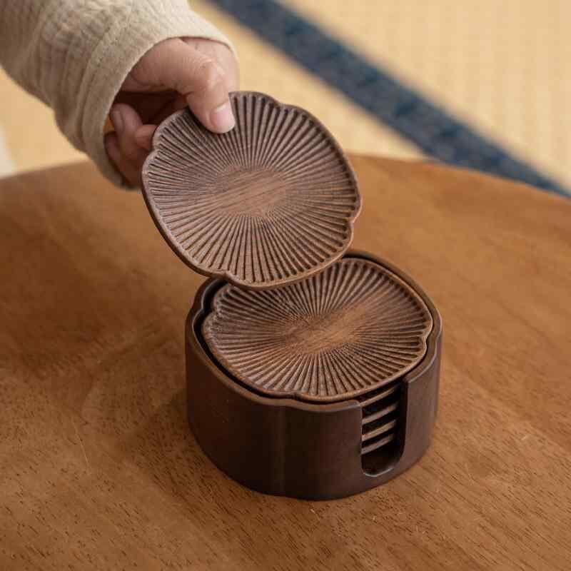 コースター ウォールナット材 無垢材 新中式スタイル 茶道 茶器 保護 断熱 耐熱 カップマット 来客用 収納 天然木製 おしゃれ インテリア テーブルウェア 水滴防止 傷防止 滑り止め