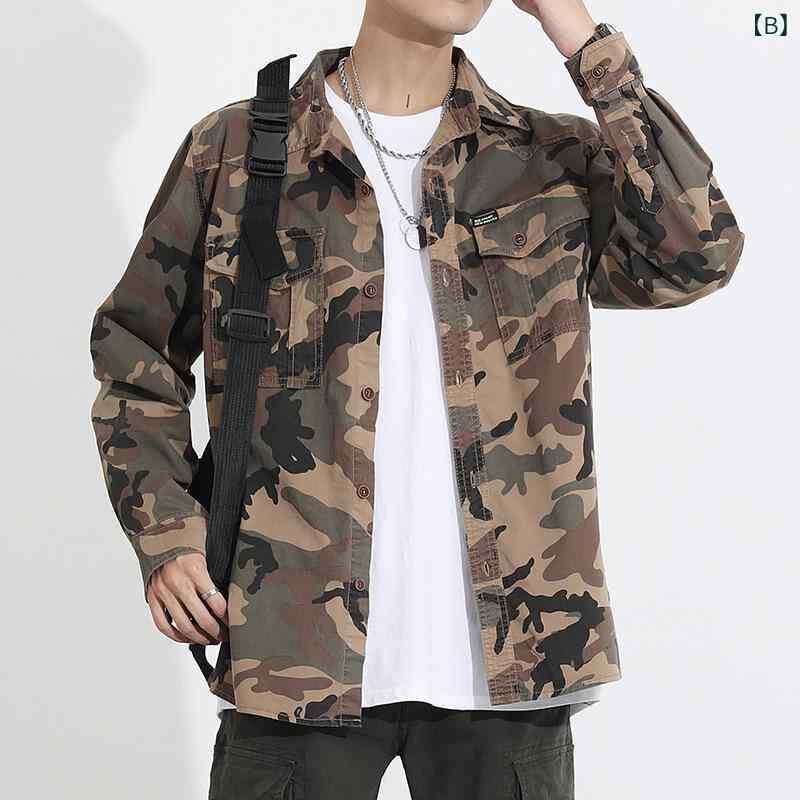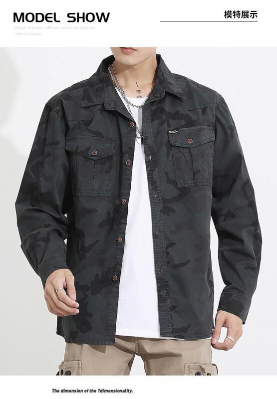 シャツ メンズ 男性用 迷彩 カモフラージュ ワークジャケット 長袖 ストリート ビッグシルエット カジュアル 防水 防風 耐摩耗 ポケット アウター 春秋 コットン