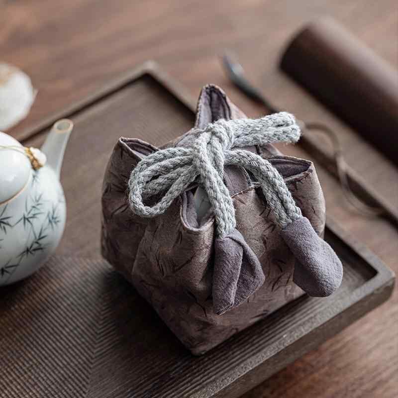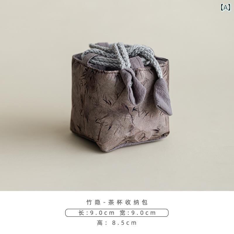 収納バッグ 携帯用 トラベル 厚手 茶器セット 蓋碗 茶壺 主人杯 収納ポーチ 竹柄 雲紗布製 新中式スタイル