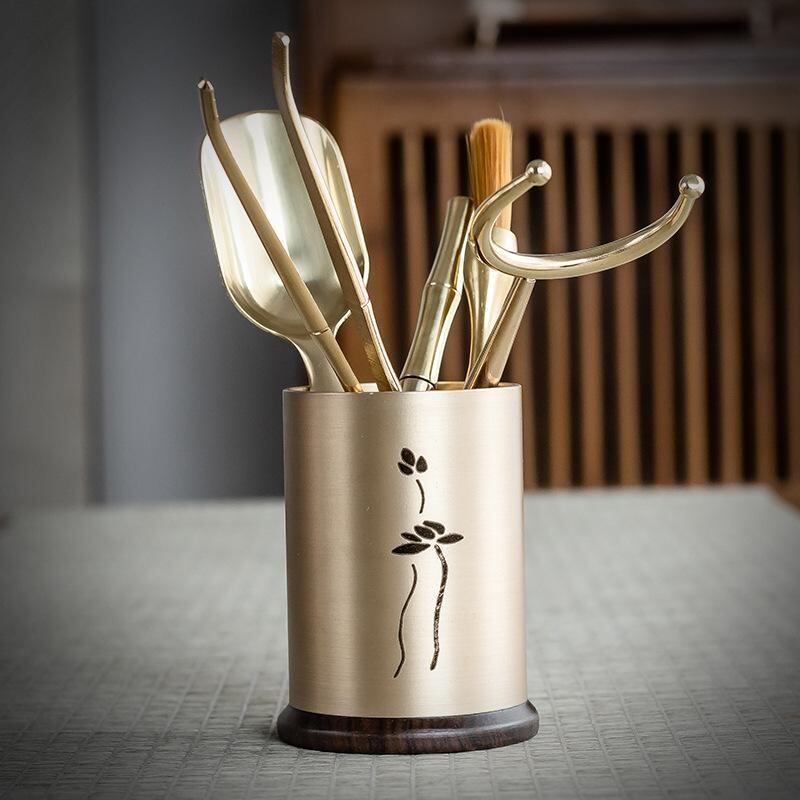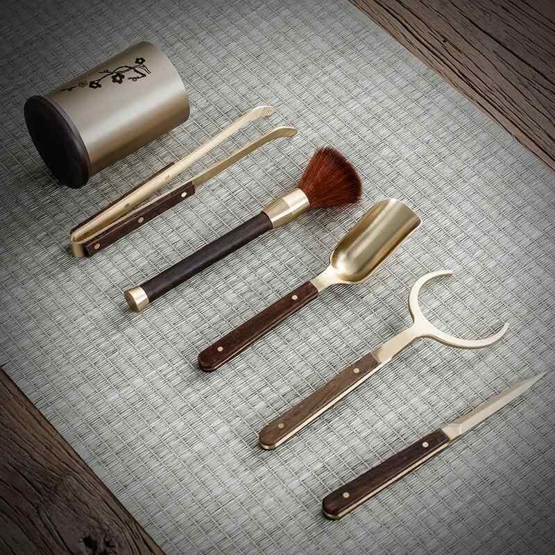 茶道具 中国茶器 功夫茶道六君子 真鍮 木製 フルセット 茶針 茶刀 茶挟 茶匙 茶則 茶漏 茶葉用 お茶淹れ 喫茶用品 ティーセレモニー おしゃれ 上質 レトロ モダン 収納