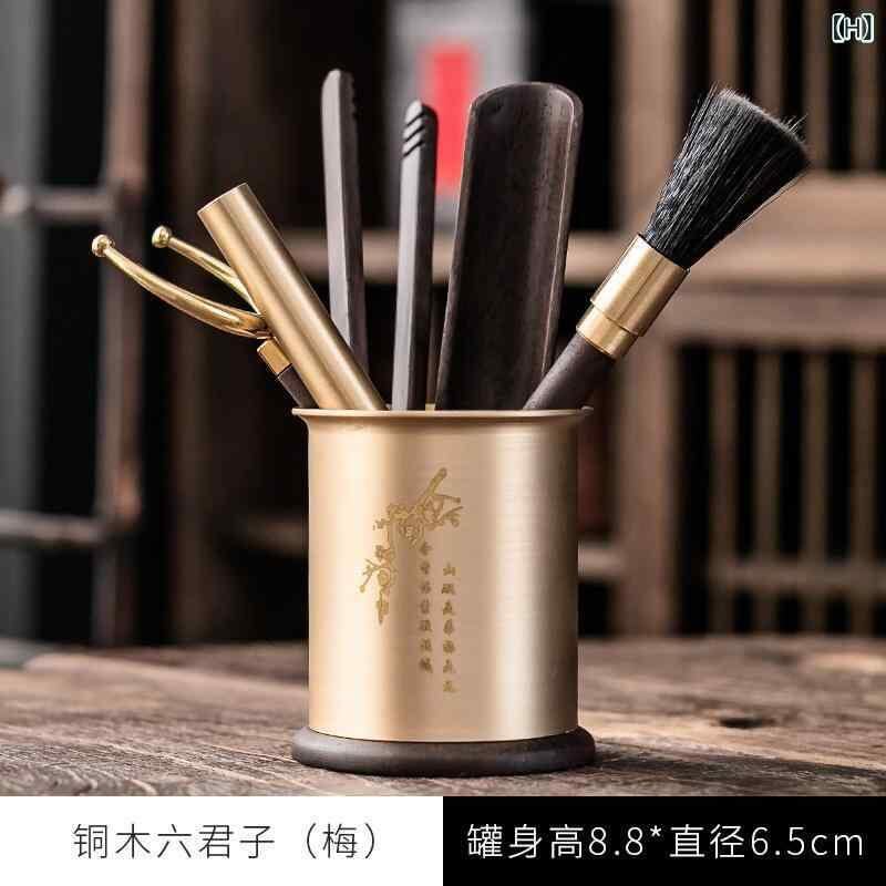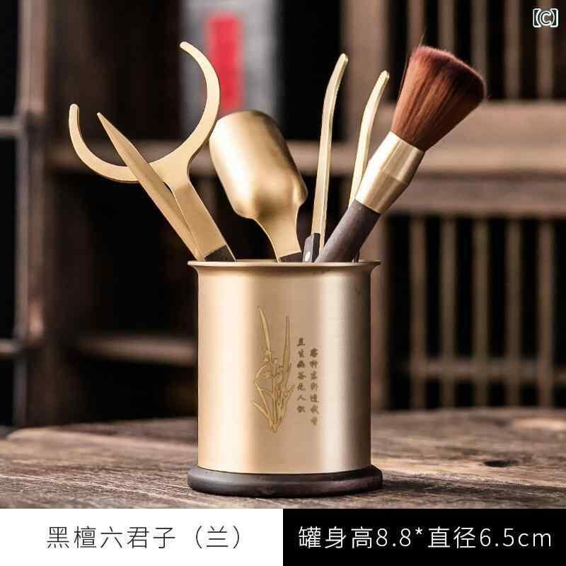 茶道具 銅 黒檀木 茶道六君子セット 茶挟 茶匙 養壺筆 新中国風 高級感 功夫茶具 茶芸 お茶会 来客用 梅 蘭 菊 竹デザイン