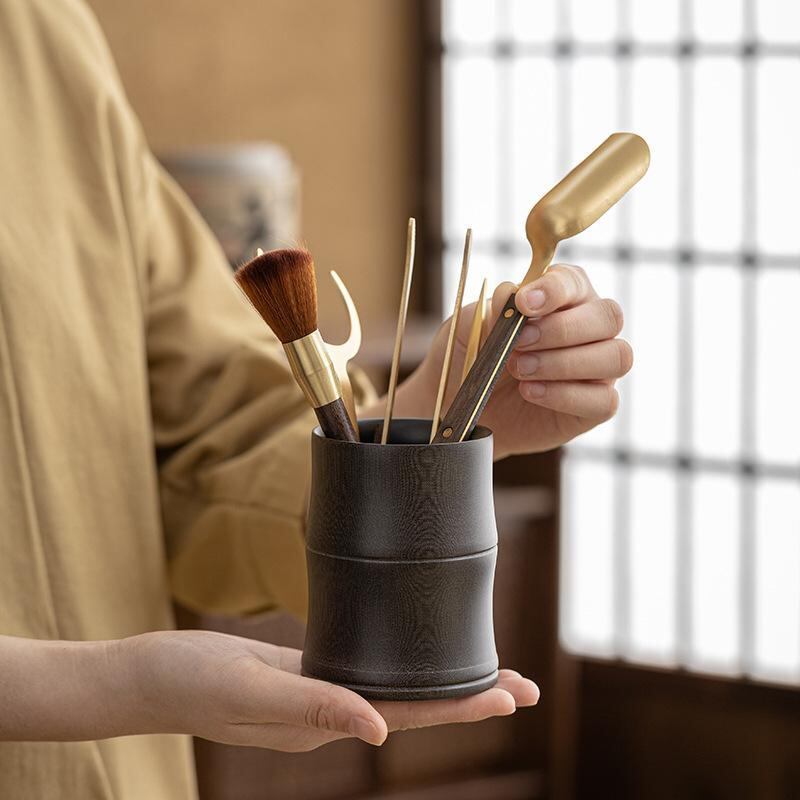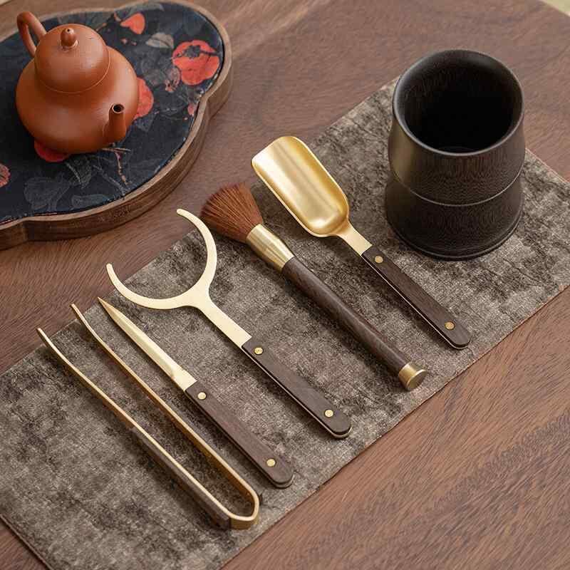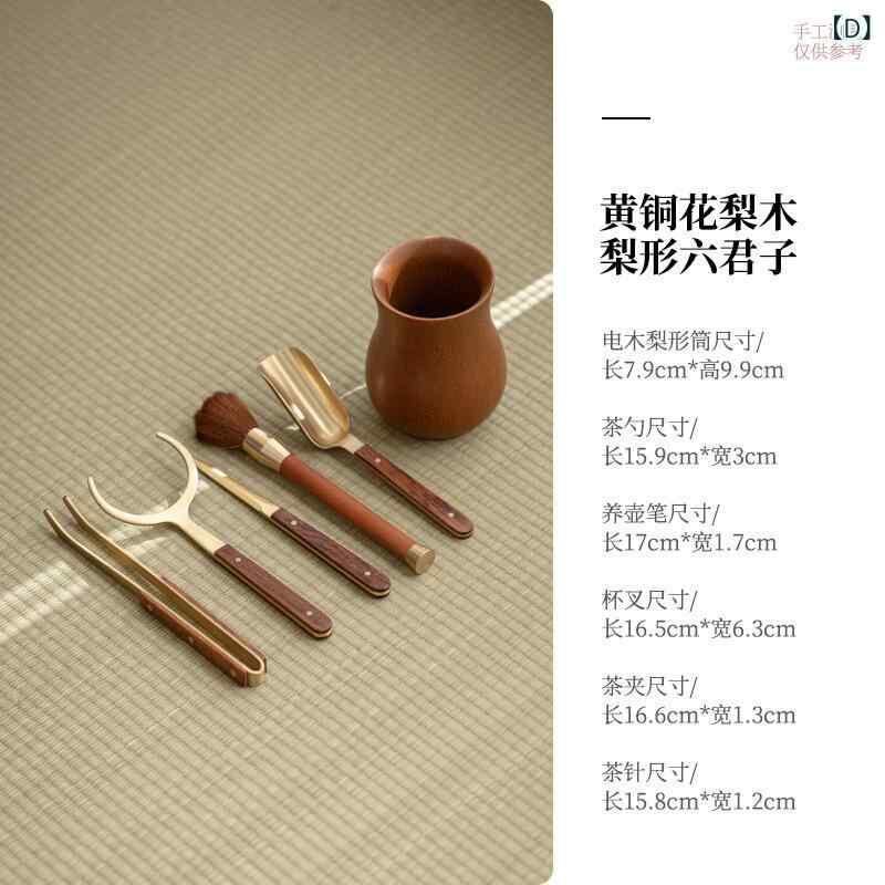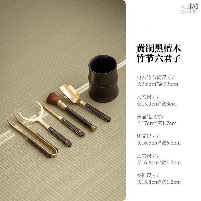 茶道アクセサリー 黄銅 六君子セット 中国茶器 功夫茶具 茶道具 茶挟 茶バサミ 茶葉挟み 茶葉トング ピンセット 茶杯 湯呑み 純銅 軽量 新中式 モダン