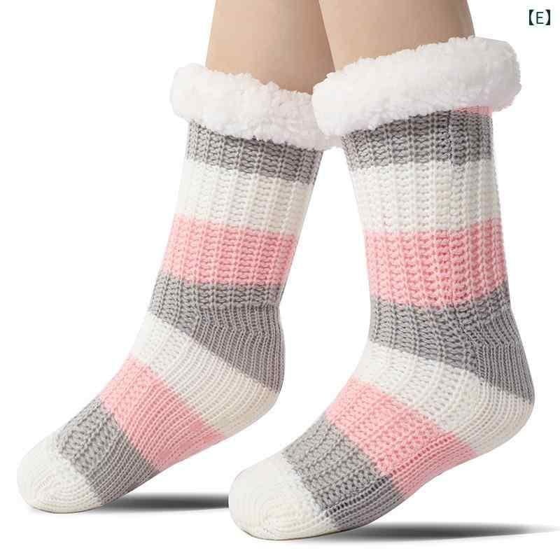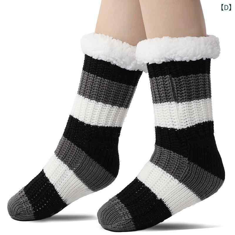 ルームソックス レディース 女性用 裏起毛 もこもこ 厚手 アクリル 滑り止め付き あったか 暖かい 室内履き おうち時間 スリッパタイプ 秋冬 ボーダー柄