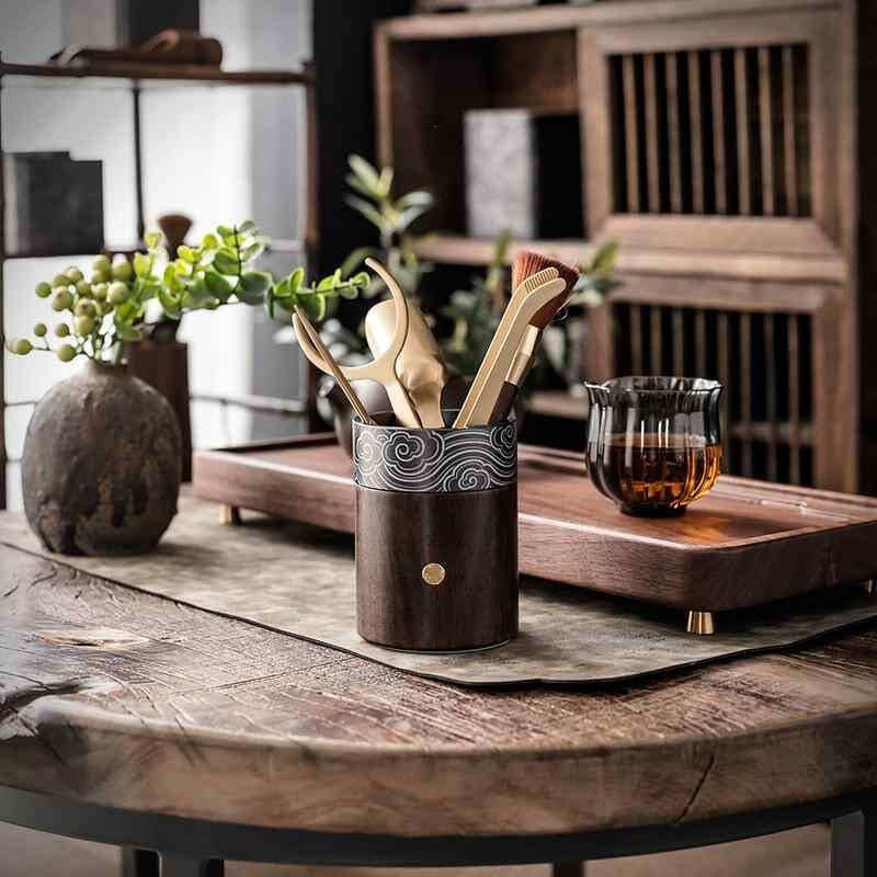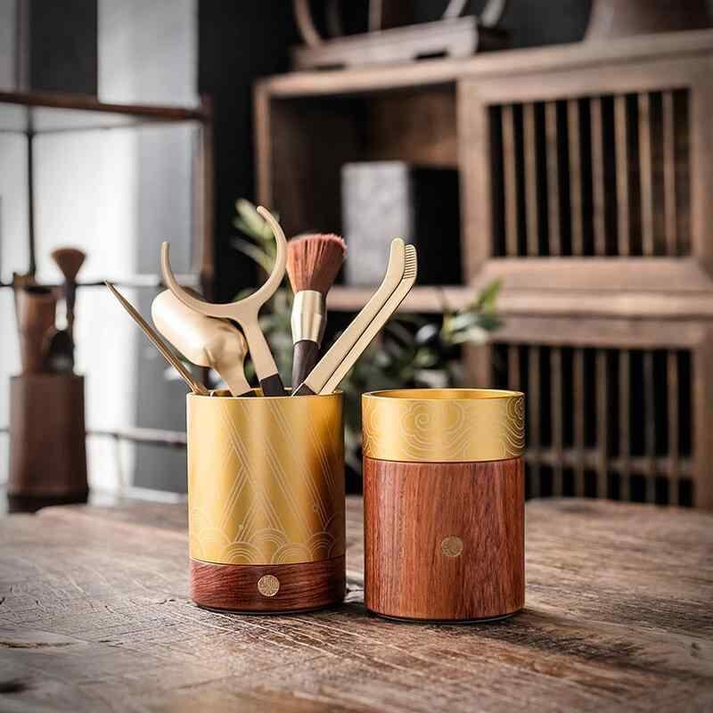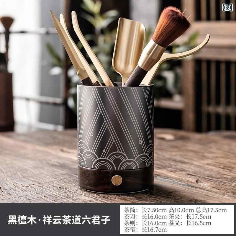 茶道具 六君子セット 銅製 アルミ合金 家庭用 高級感 新中式 茶器 置物 茶葉入れ 茶壺ブラシ 茶筒 プーアル茶ナイフ 金色 灰色 ローズウッド調 エボニー調