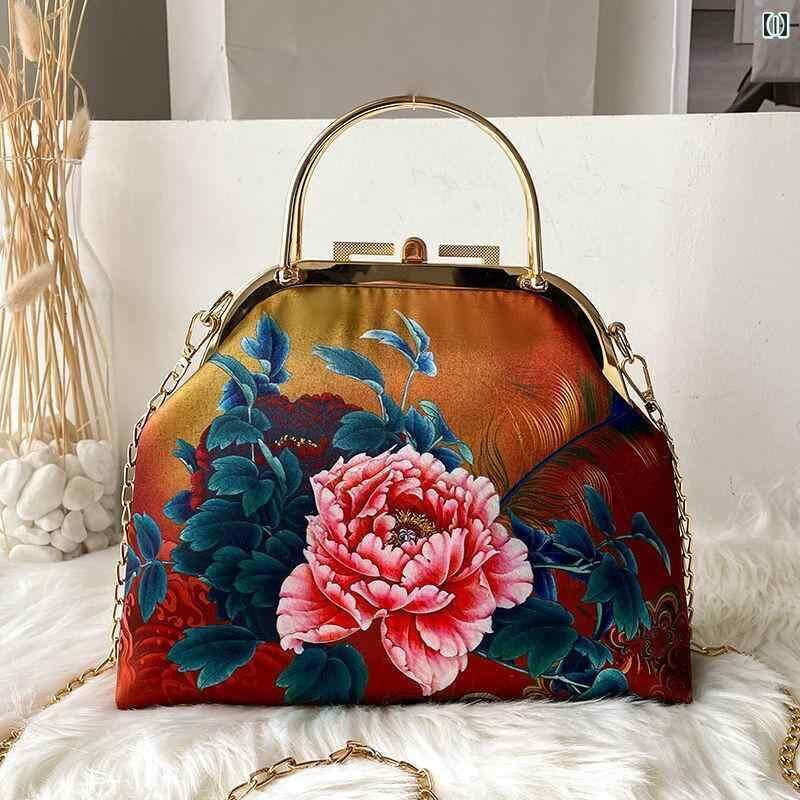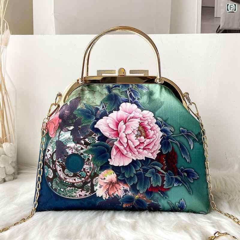 鞄 レディース 民国風レトロ チャイナドレス 漢服風 刺繍 メッシュ パール がま口 手提げ 肩掛け 斜めがけ 上品 エレガント 普段使い パーティー