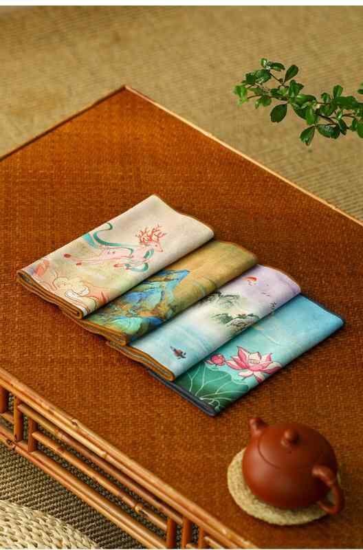 茶巾 高級感 スエード調 厚手 柔らかな肌触り 吸水性抜群 綿製 レトロ調 風情ある絵柄 ティーテーブル拭き 茶器 水槽拭き 多目的クロス