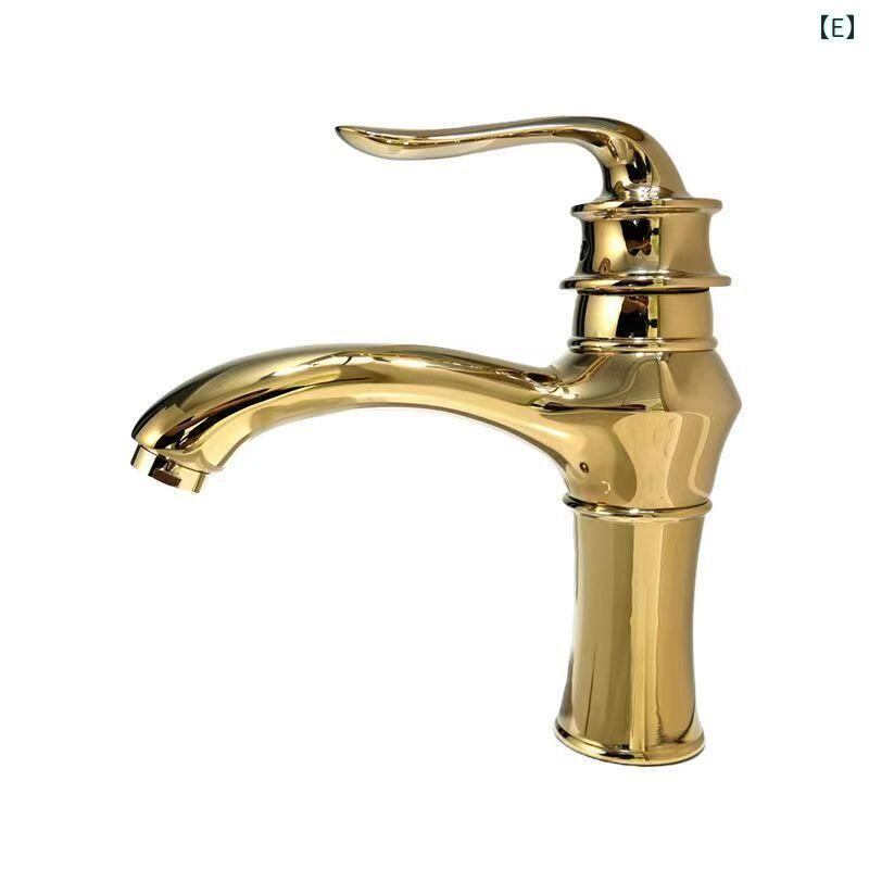 洗面水栓 ヨーロピアン レトロ アンティーク調 高級感 混合水栓 湯水混合 ゴールド 洗面台用 洗面器 カウンター型 亜鉛合金 電気メッキ加工 セラミックバルブ
