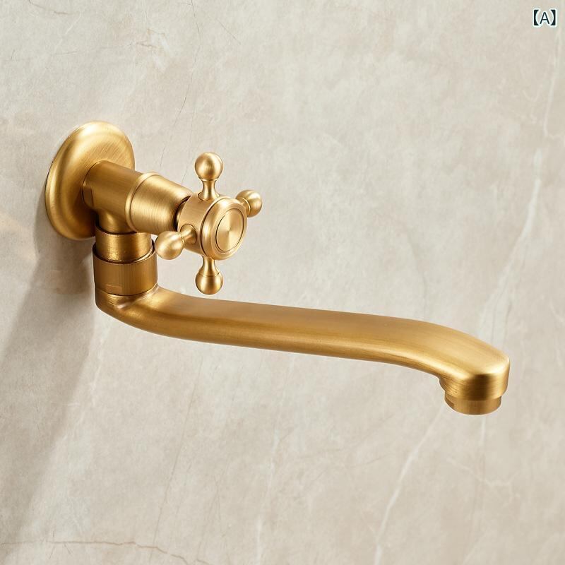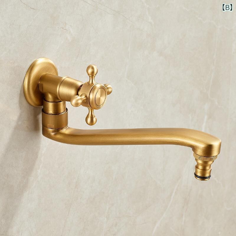 蛇口 屋外用 壁付け 洗濯機 モップシンク ガーデン用 ロングノズル 単水栓 冷水カラン 回転式 レトロ アンティーク調銅 ブロンズカラー 真鍮製 ヴィンテージ