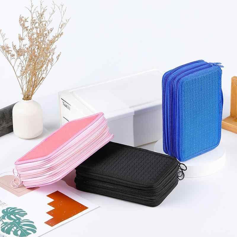ペンケース 男女兼用 3層 大容量 スクエア型 帆布 キャンバス生地 ブラック 文房具 画材 マーカー 絵筆 収納ポーチ 多機能 マルチケース オフィス 通学