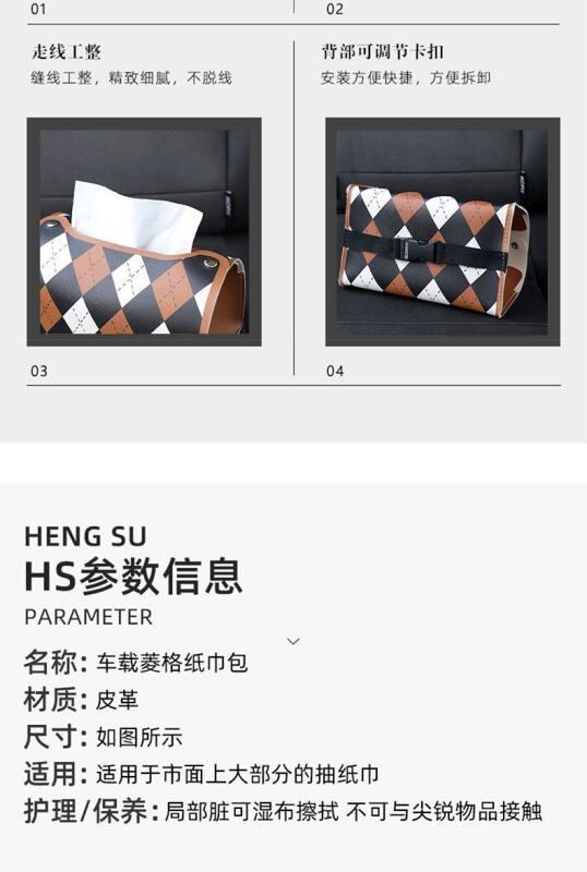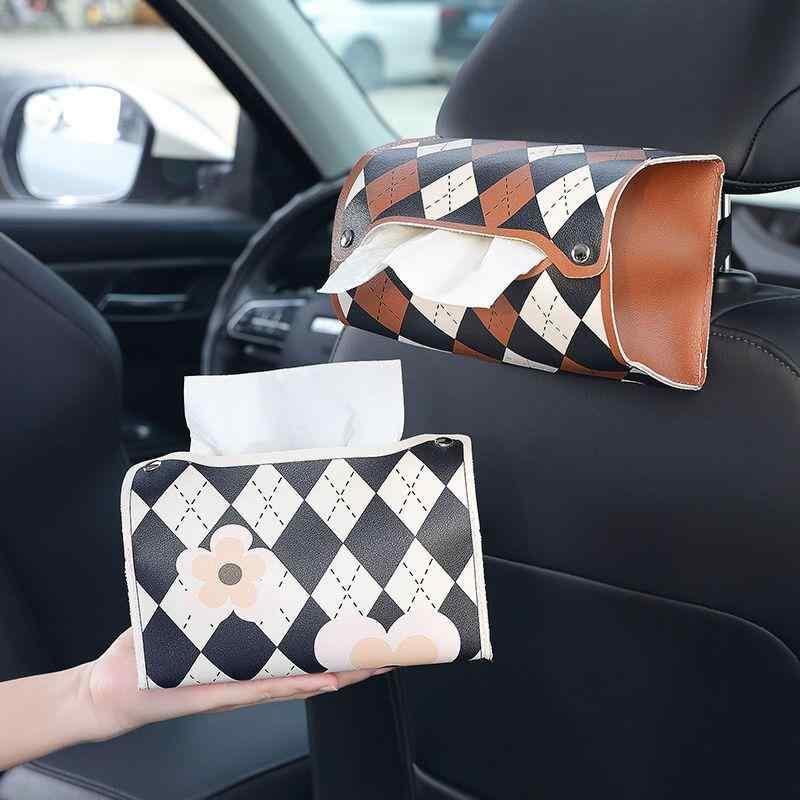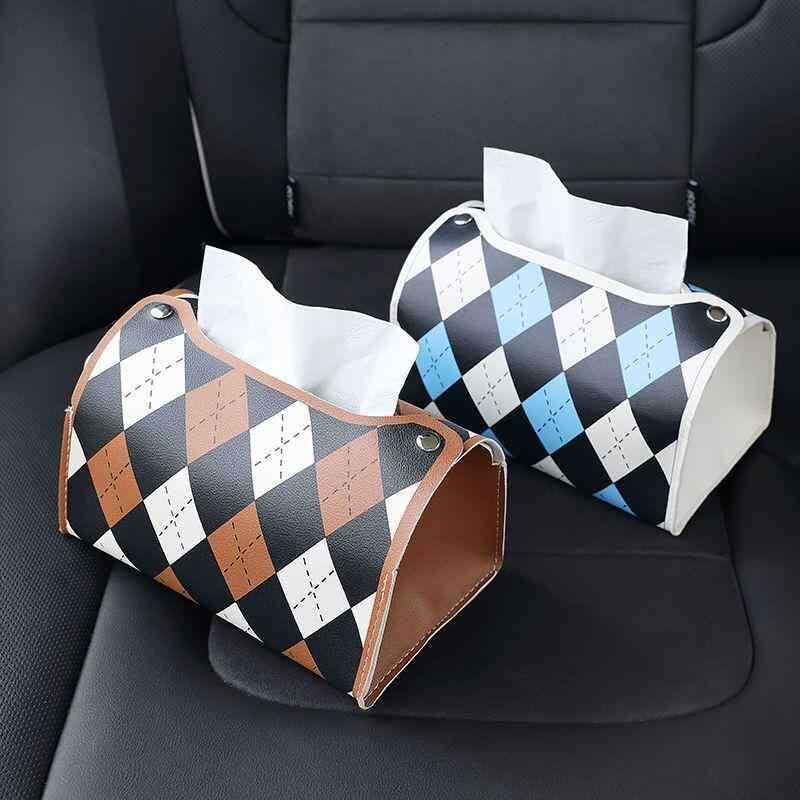 車載ティッシュケース 車用 ティッシュボックス カバー アームレスト吊り下げ レザー 革製 ひし形柄 防水 多機能 高級感 モダン シンプル カー用品 ブルー ブラウン
