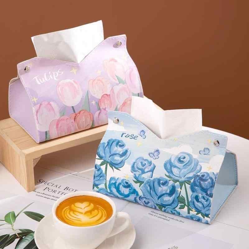 ティッシュケース 油絵風 フラワーアート 花柄 かわいい 防水 フェイクレザー 抽出式 モダン シンプル リビング ダイニング 寝室 車内 バスルーム 兼用 おしゃれ 収納ボックス