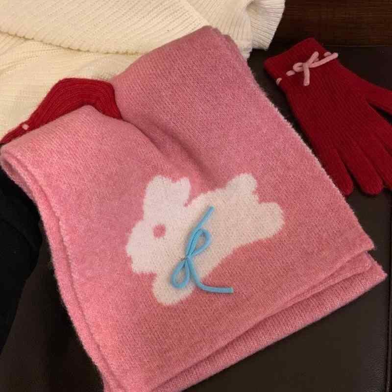 マフラー ストール ネックウォーマー レディース 女性用 秋冬 冬用 防寒対策 暖かい あったか 保温性 柔らかい ニット フェイクカシミヤ ポリエステル 韓国風 かわいい キュート うさぎ ラビット リボン 蝶結び カジュアル おしゃれ ブラック ホワ