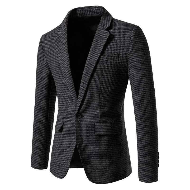 ジャケット メンズ 韓国風 ファッション カジュアル スリムフィット チェック柄 テーラードジャケット 洗える ビジネス 通勤 普段着 綿混 ポリエステル素材 ライトグレー ダークグレー カーキ