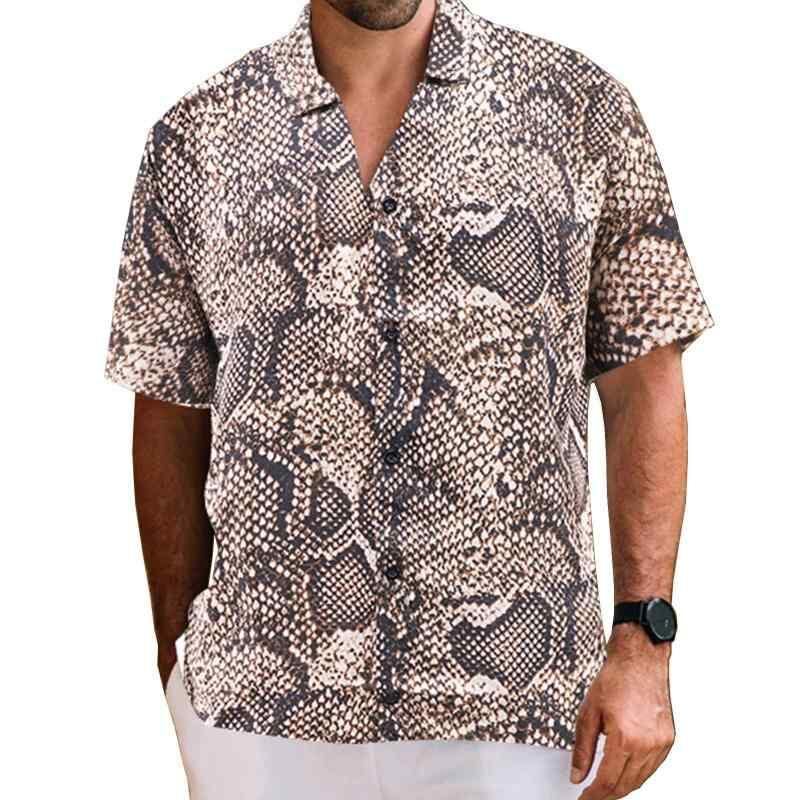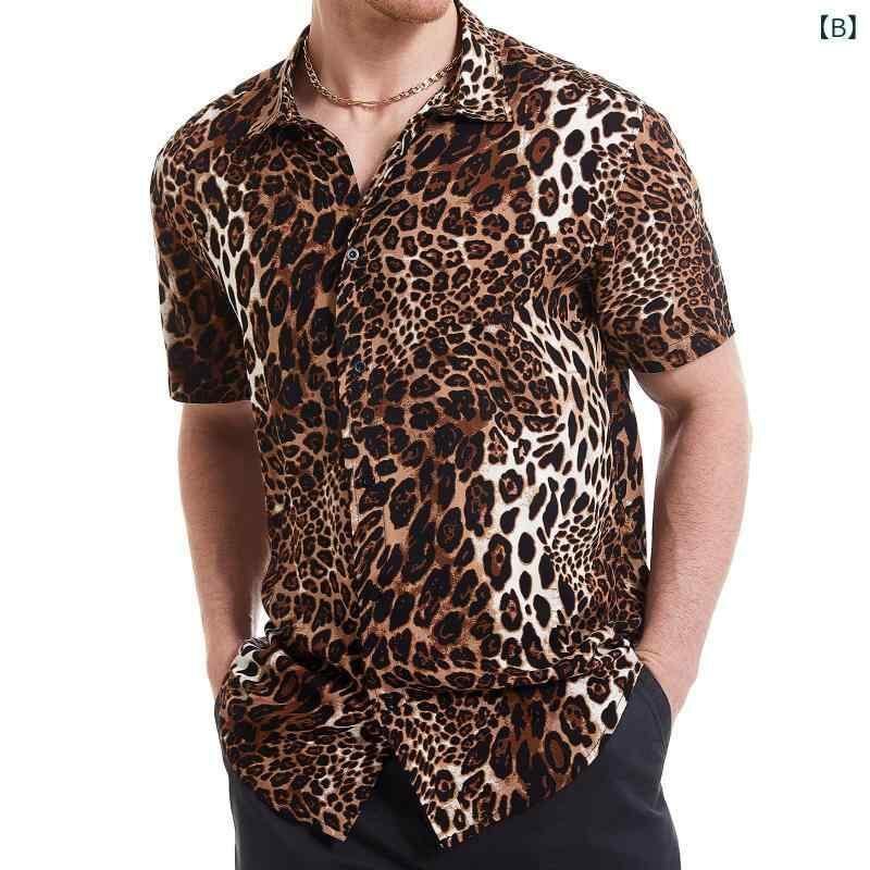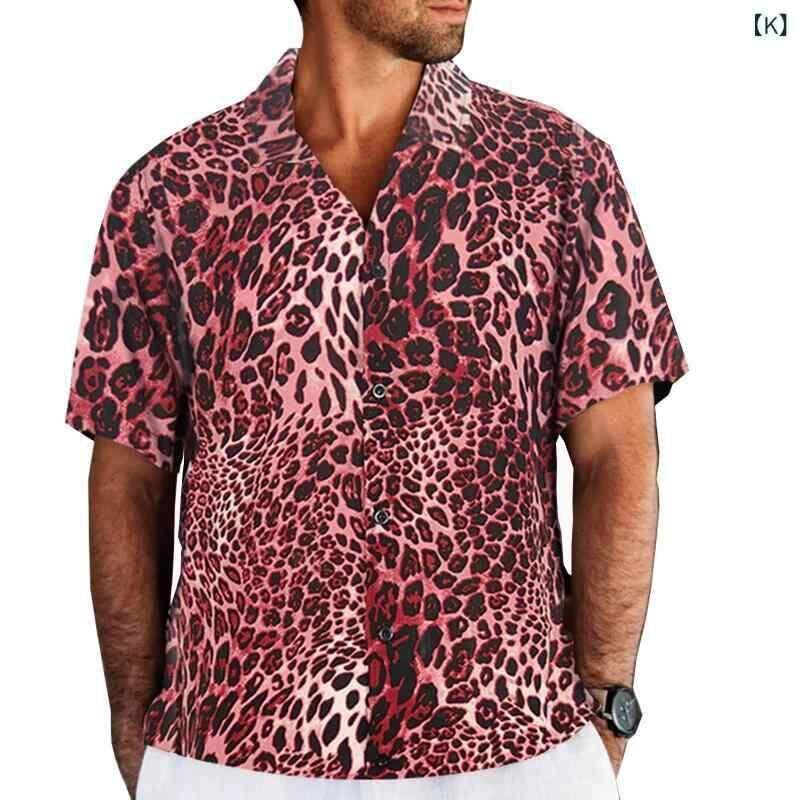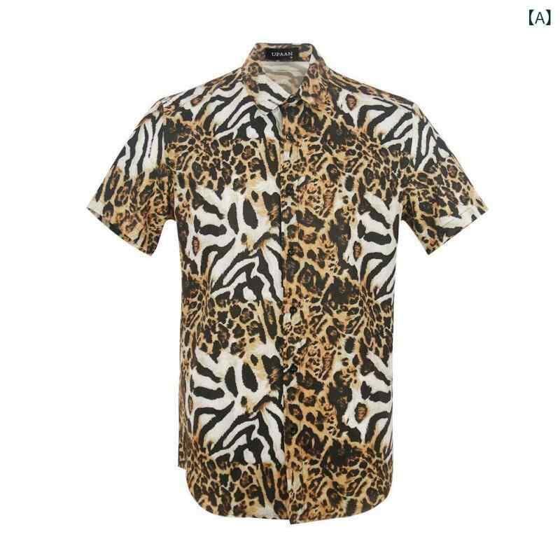 シャツ 男性用 ヒョウ柄 プリント 半袖 開襟 オープンカラー 襟付き ルーズフィット ビッグシルエット ポリエステル トップス カジュアル 普段使い 春夏