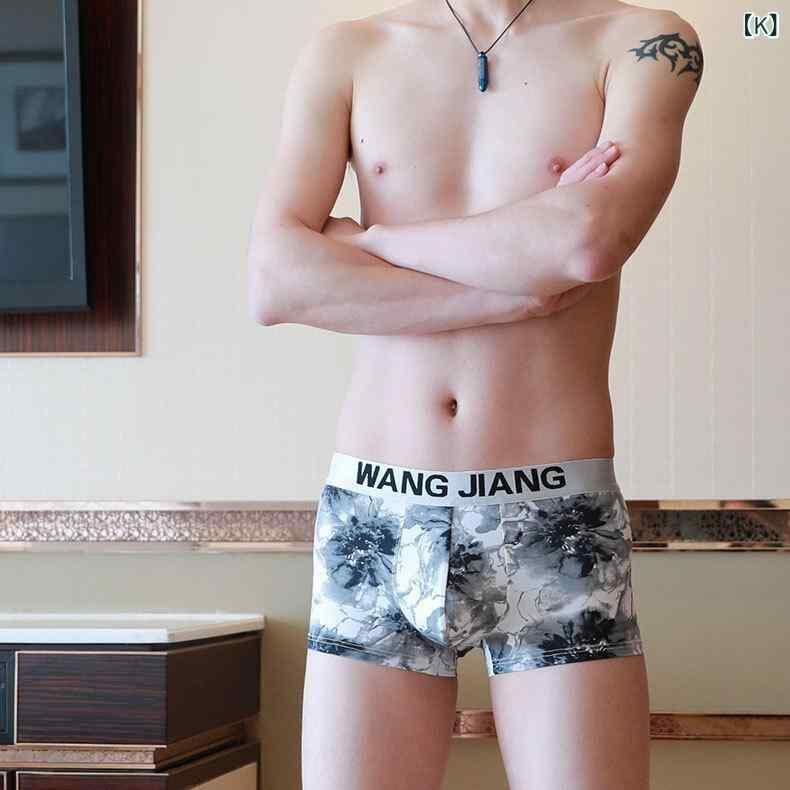 ボクサーパンツ メンズ 若者向け 接触冷感 通気性 吸湿速乾 ミドルウエスト 韓国風 個性的 スタイリッシュ ナイロン ヒップアップ 腹部サポート 花柄 動物柄 プリント柄
