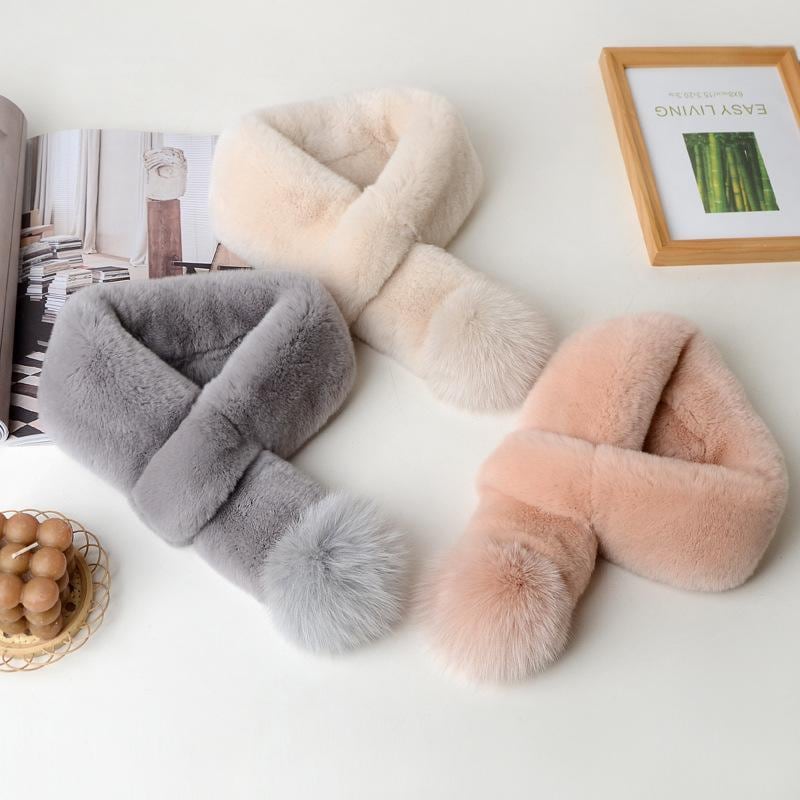 ティペット レディース 女性用 レッキスラビットファー フォックスファーチャーム マグネット式 ダブルフェイス リアルファー 毛皮 ボリューム 高級感 かわいい あたたかい 保温 防寒 秋冬 普段使い デート 通勤
