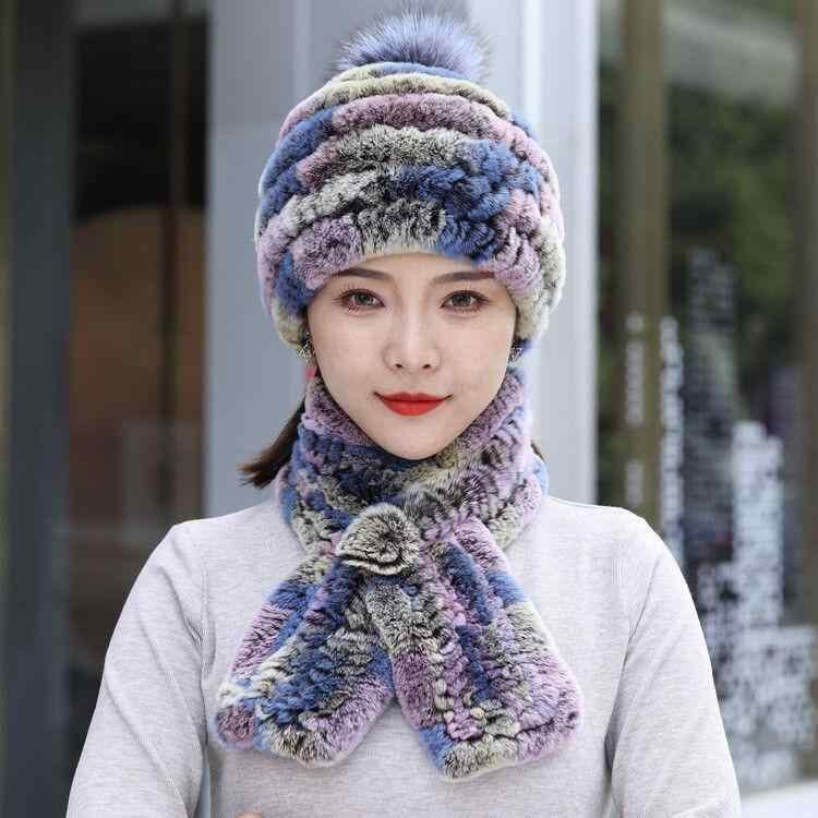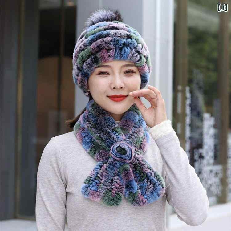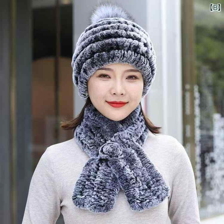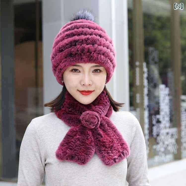 帽子 レディース レッキスラビットファー ニット帽 フォックスファーポンポン付き 耳あて付き マフラーセット 厚手 防寒 保温 防風 あったか ふわふわ 韓国ファッション 秋冬 普段使い お出かけ カジュアル