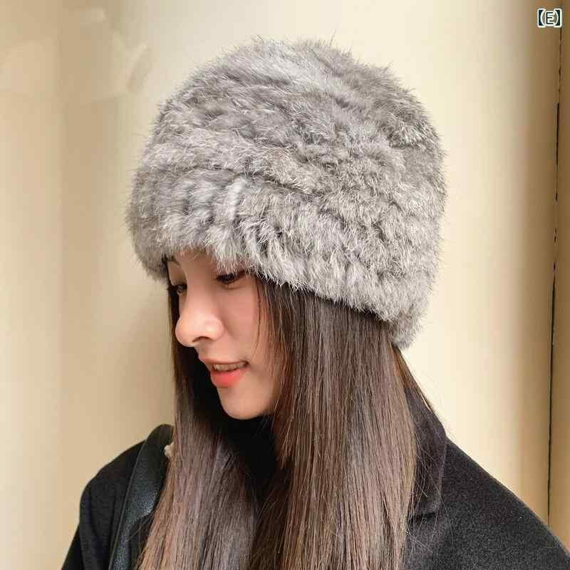 ニット帽 レディース 高級感 ラビットファー 厚手 ふわふわ もこもこ 防寒 保温 あったか 耳当て付き イヤーマフ 秋冬 普段使い カジュアルスタイル