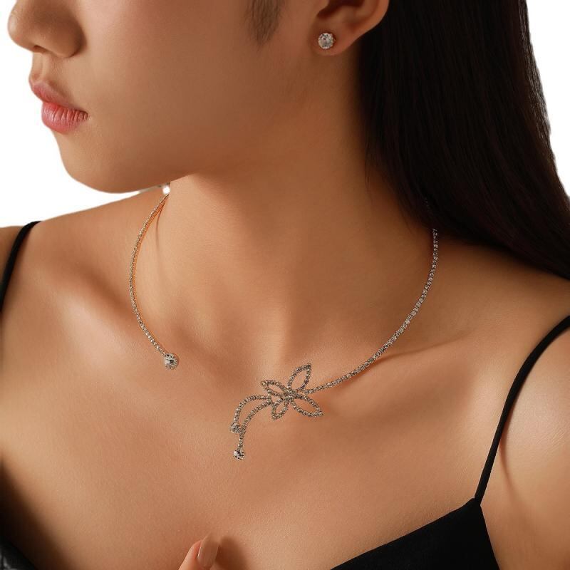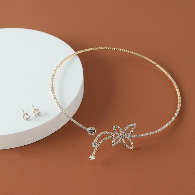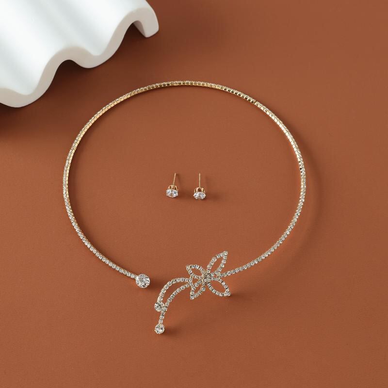 ネックレス ピアス セット レディース 女性用 ブライダル ウェディング 結婚式 上品 エレガント おしゃれ ジルコニア 蝶 バタフライ ゴールド 高見え フォーマル パーティー 2点セット