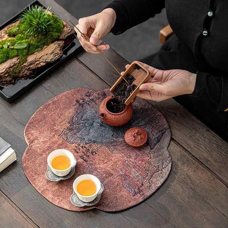ティーマット 新中国風 香雲紗風 円形 乾泡茶席 敷物 高級感 禅モダン 両面 断熱 レトロ テーブルクロス 茶布