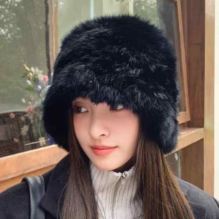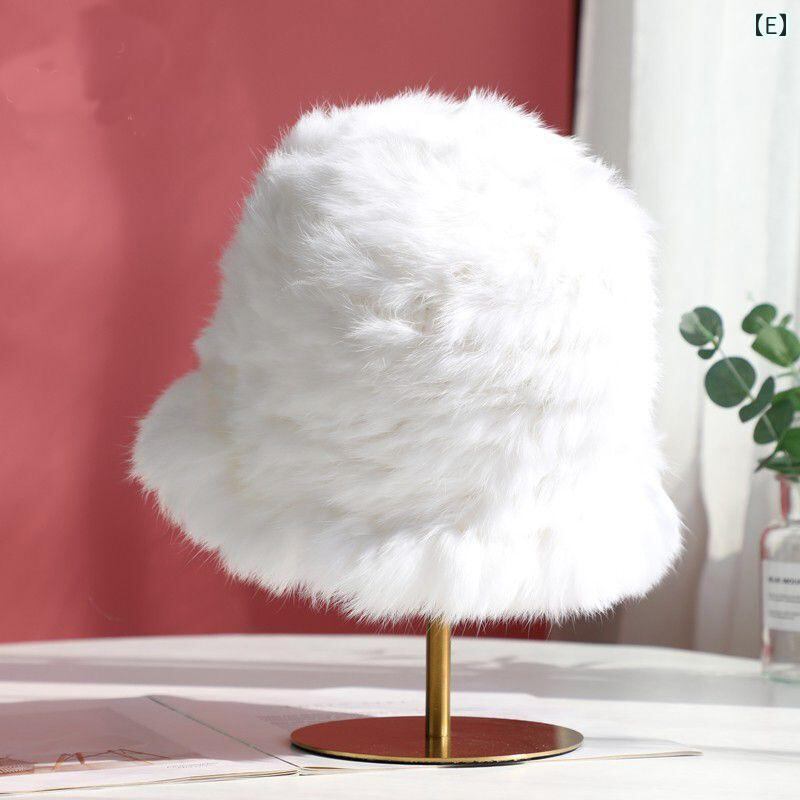 帽子 レディース 厚手 暖かい ふわふわ もこもこ 高級感 ラビットファー ニット 手編み風 耳当て付き バケットハット つば広 秋冬 防寒 防風 おしゃれ 普段使い お出かけ