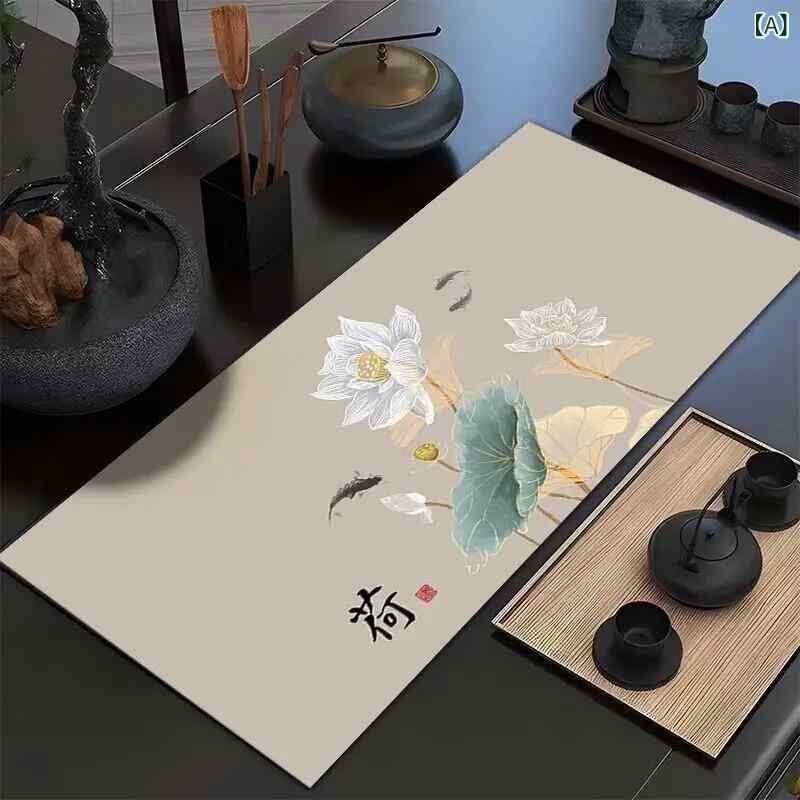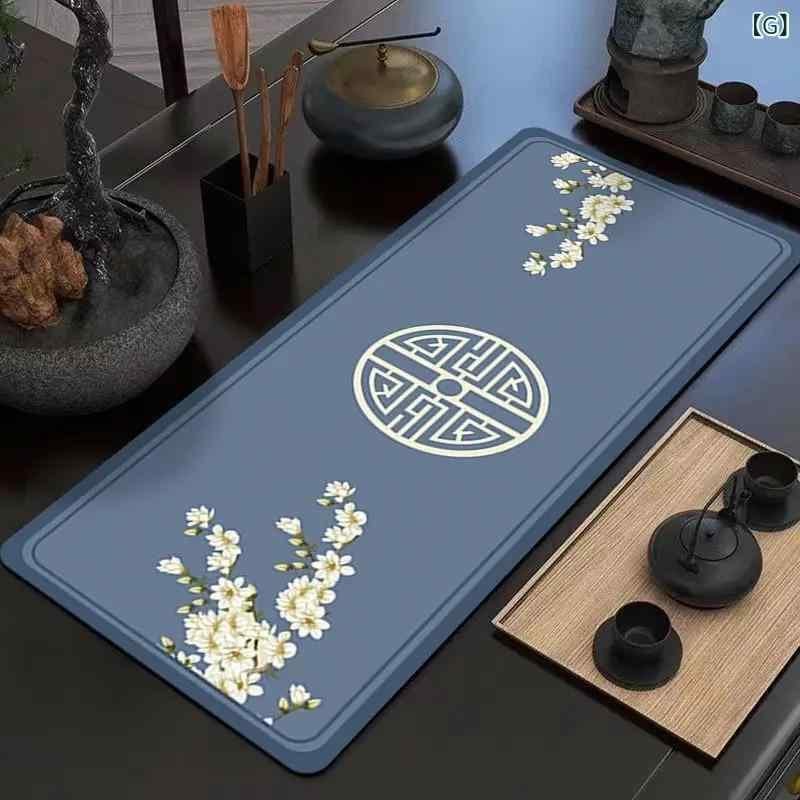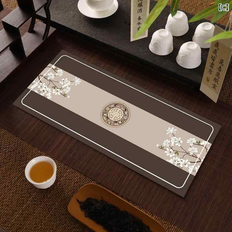 茶巾 ティーマット ティーランナー 中国風 禅テイスト 和モダン 古風 吸水 速乾 防塵 汚れにくい 断熱 家庭用 TPE素材 スクエア型 抽象柄 多目的 茶道具 茶席 リビング 書斎 ダイニング