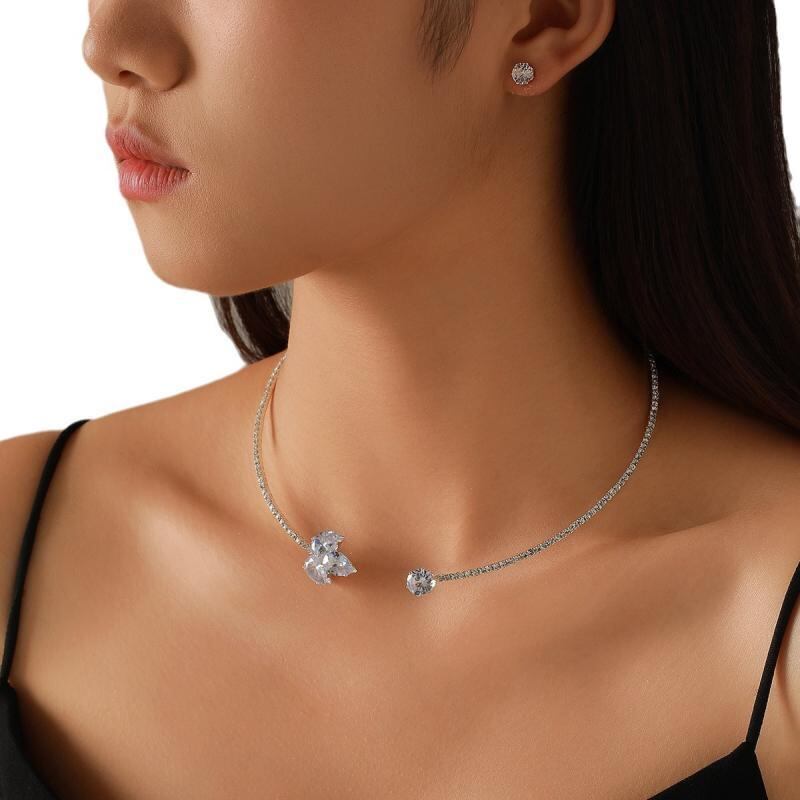 アクセサリーセット 女性用 ネックレス イヤリング 2点セット 楓の葉 メープルリーフ オープンデザイン ラインストーン クリスタル 煌めく ブライダル 結婚式 ウェディング 披露宴 パーティー シルバー