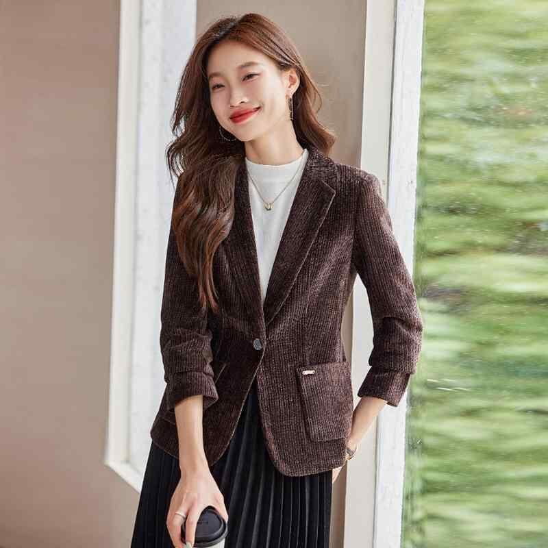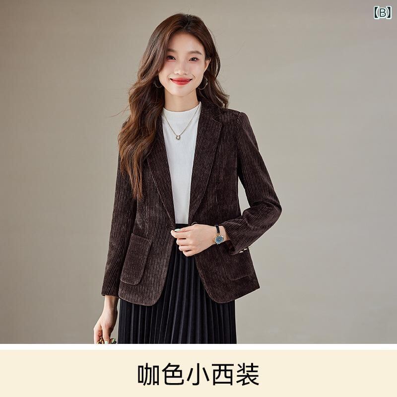 テーラードジャケット レディース 春秋 コーデュロイ カジュアル 高級感 エレガント スタイルアップ スリムフィット 着痩せ Vネック 長袖 ワンボタン ピンク コーヒー アイボリー オフィス 通勤 アウター