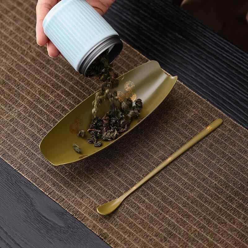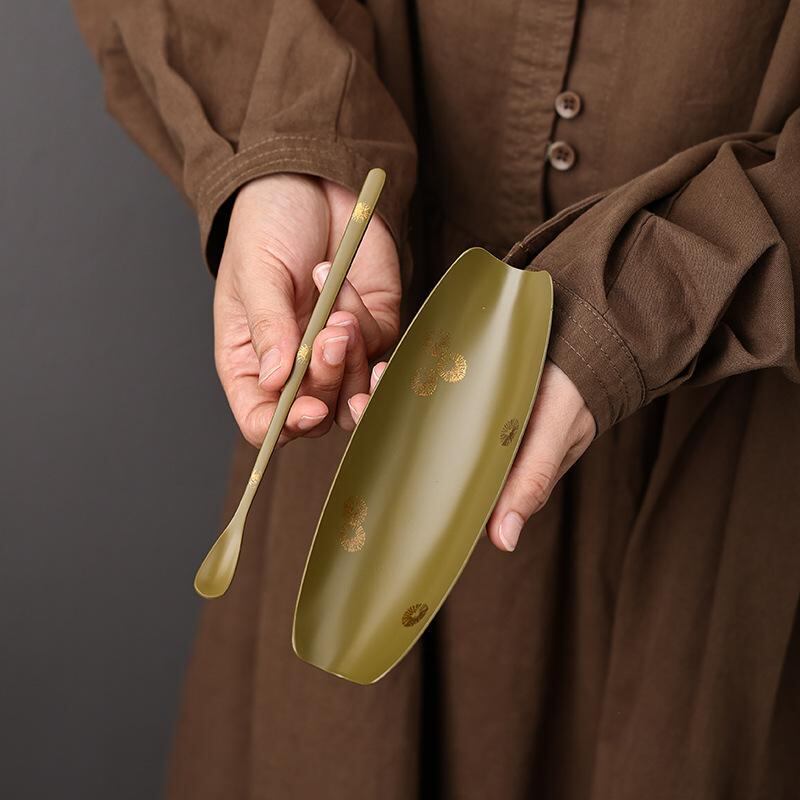 茶道具 レトロ アンティーク 趣のある 鉄製 大漆 点金 茶則 茶匙 茶荷 茶杓 中国茶 功夫茶 茶鑑賞 茶器 茶道小物 ブラウン ダークグリーン ブラック ブルー