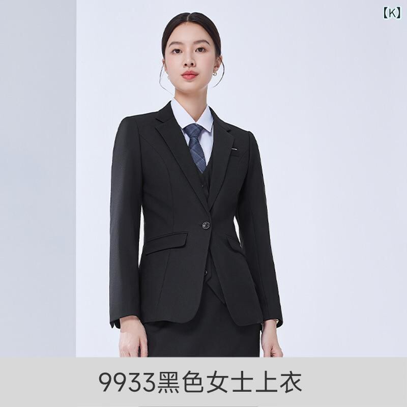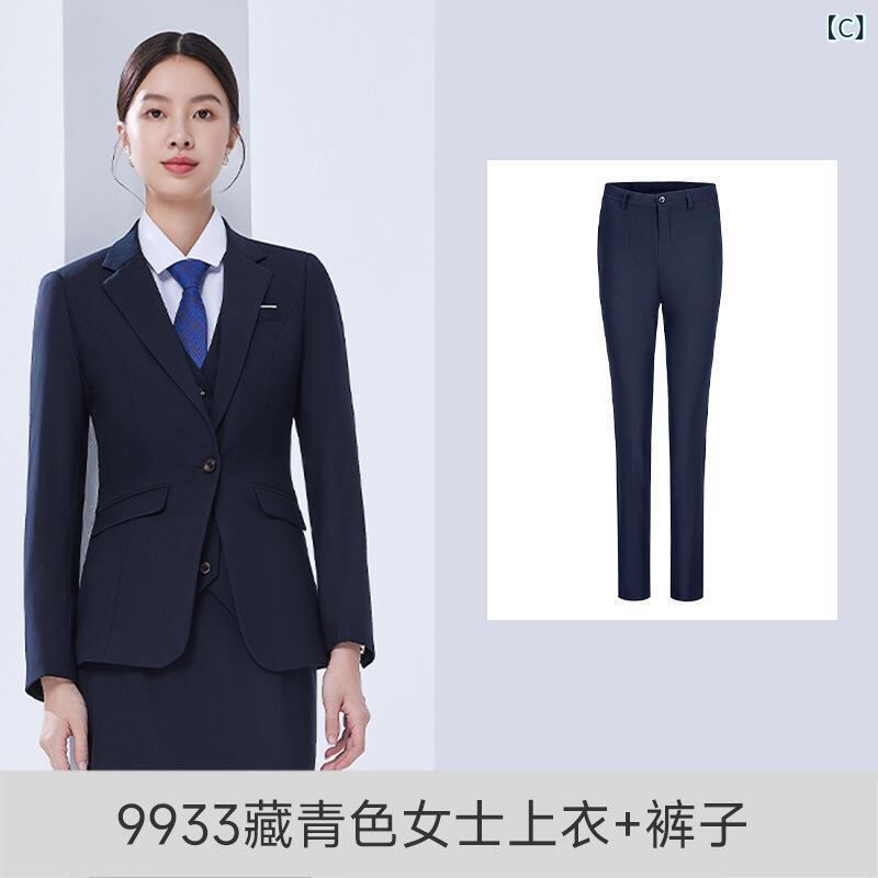 スーツ 男女兼用 高級感 ビジネス フォーマル 制服 ユニフォーム ホテル 事務服 オフィス 販売 マネージャー セットアップ 上下セット 長袖 スラックス 再生繊維 春秋