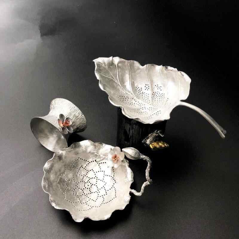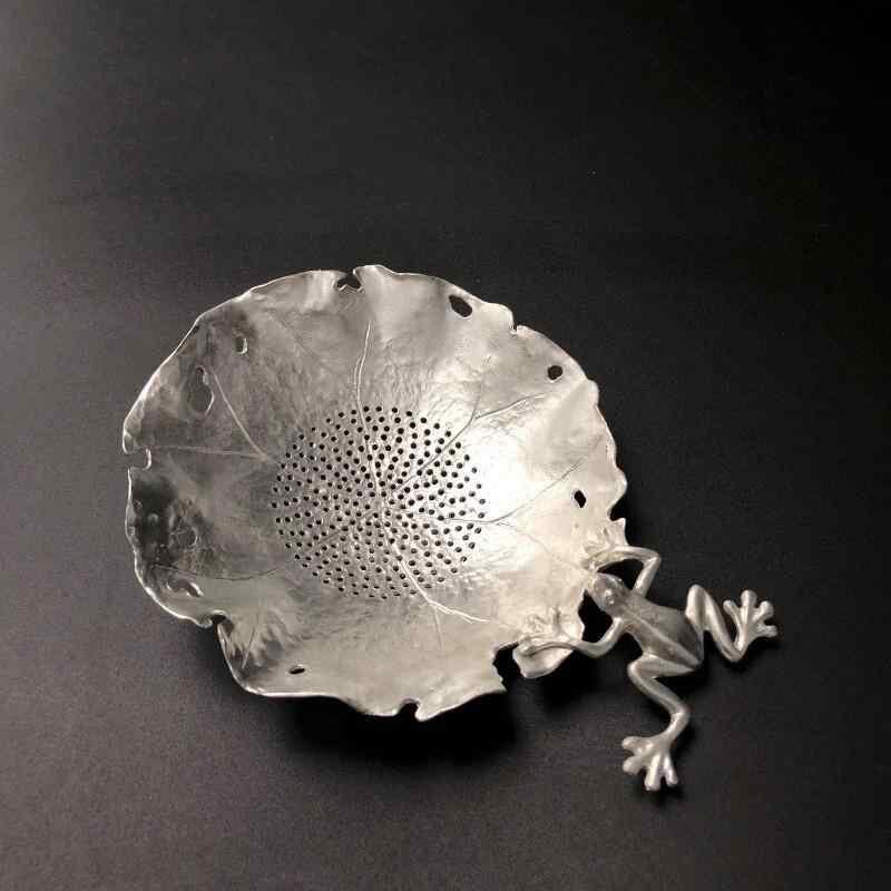 茶漉し 純錫 すず製 手作り 功夫茶器 新中式 ティーストレーナー 葉っぱ カエル 蓮 蜻蛉 モチーフ 台座付き 茶道具 上品 高級感 来客用