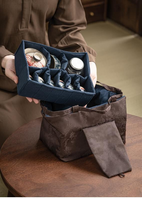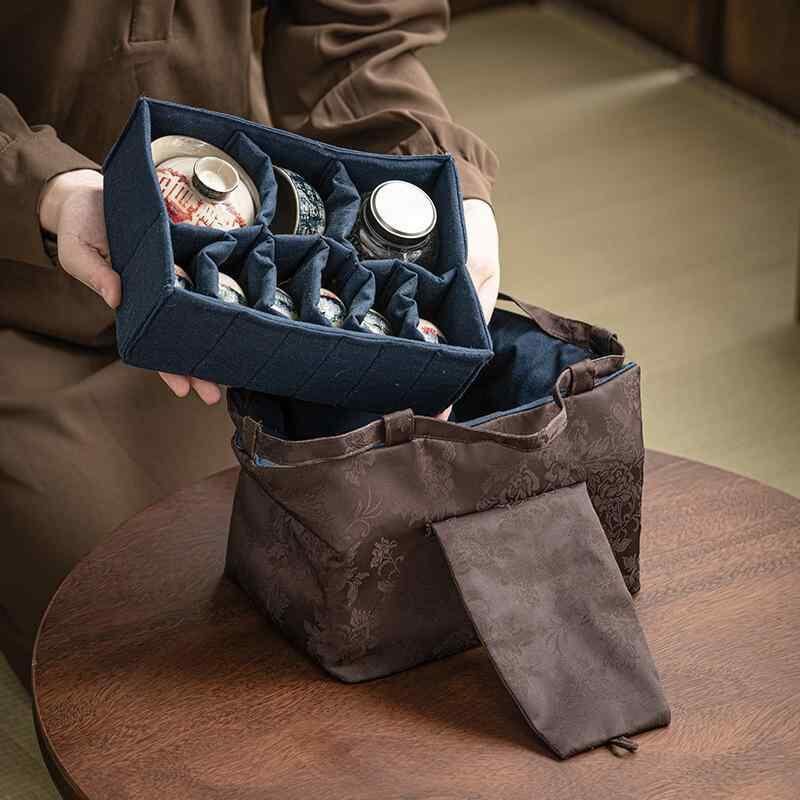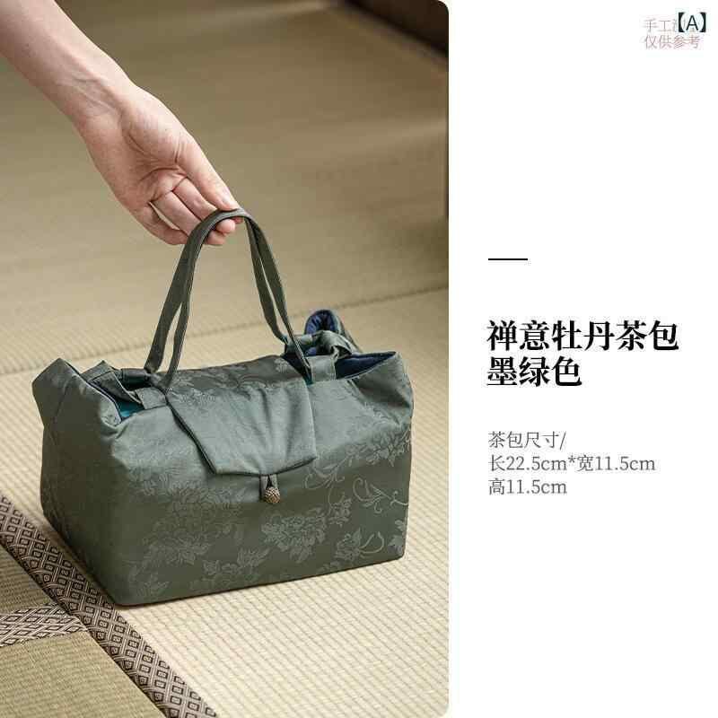 茶道具収納バッグ 禅風 牡丹 錦織り柄 厚手 丈夫 高級感 大容量 旅行 持ち運び 茶筒 茶葉入れ 布製 巾着 ポーチ 複数カラー