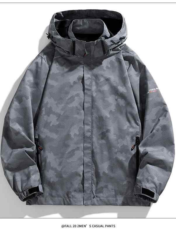 マウンテンパーカー 男性用 迷彩柄 秋冬 裏起毛 厚手 フード着脱可能 防風 防水 保温 登山 トレッキング ハイキング アウトドア キャンプ シェルジャケット アウター ポリエステル