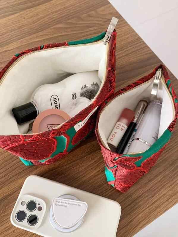 ポーチ レディース エレガント レトロ ジャガード織り 花柄 化粧 コスメ スキンケア 大容量 収納 トラベル 洗面 携帯 クラッチバッグ セカンドバッグ
