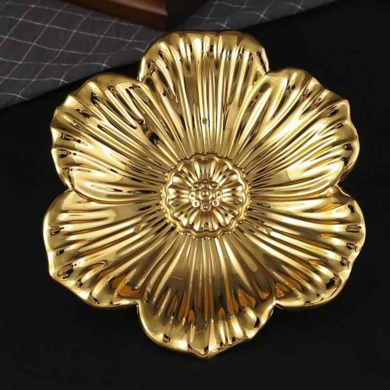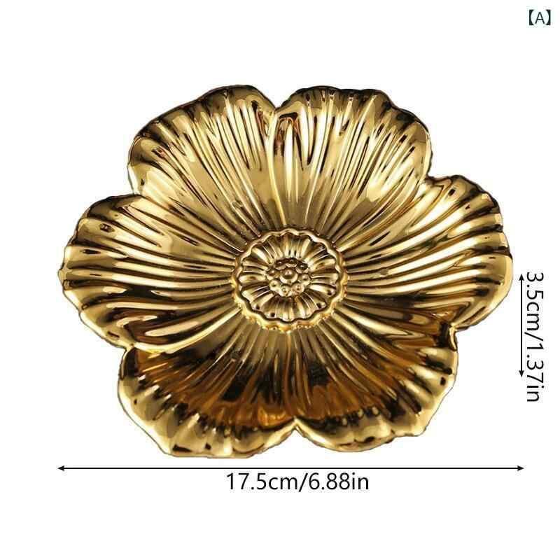 プレート 金属製 電気メッキ加工 おしゃれ かわいい キュート 花びら型 透かし彫り 不規則型 アフタヌーンティー 菓子 ケーキ スナック フルーツ リビング カップマット アクセサリー収納 小物入れ ディスプレイ オブジェ