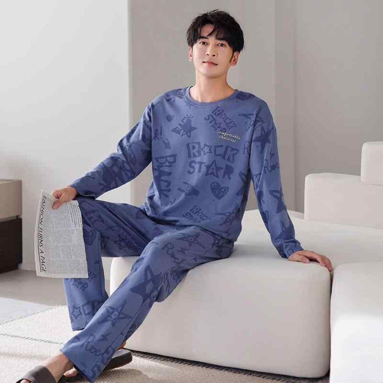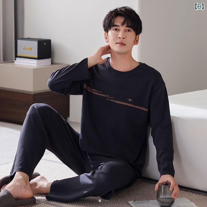 パジャマ メンズ 春秋 綿100% 長袖 クルーネック ゆったり 大きいサイズ セットアップ 上下セット カジュアル ルームウェア 部屋着 快適 伸縮性 通気性 長ズボン 中厚手