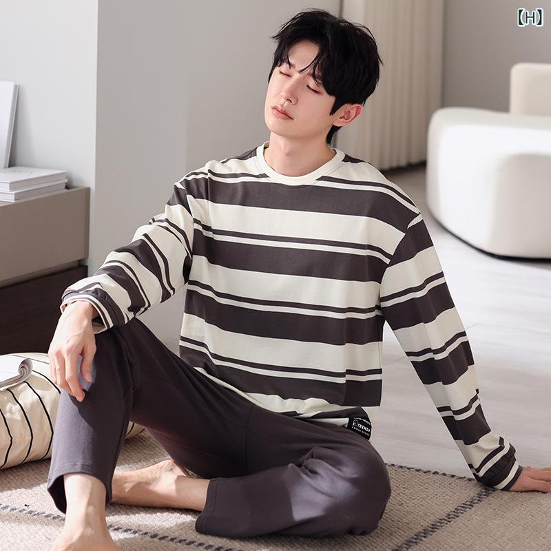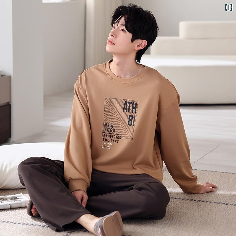 パジャマ メンズ 綿100% 春秋 長袖 ロングパンツ クルーネック プルオーバー 大きいサイズ ルームウェア 部屋着 ワンマイルウェア 快適 上下セット