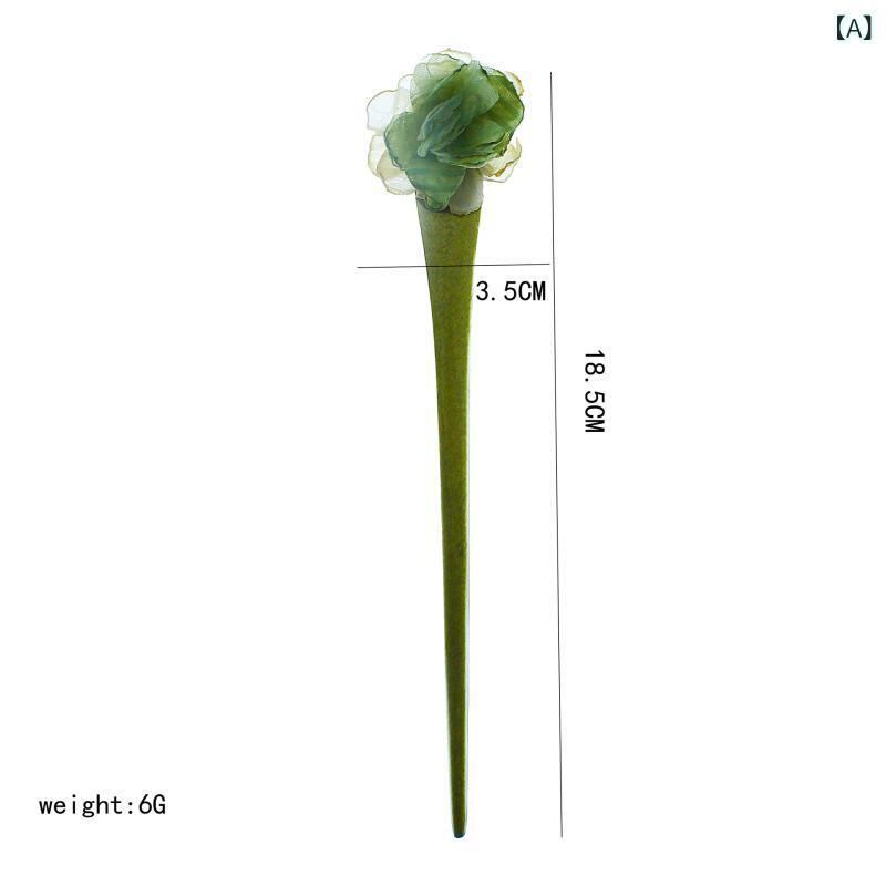 髪飾り 新中華風 レトロモダン 山茶花 椿 木製 かんざし ヘアピン 布製 シフォン ドライフラワー風 普段使い パーティー 撮影 チャイナドレス 漢服 グリーン 秋冬