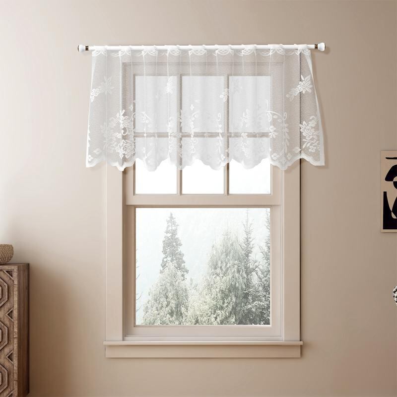 カーテン 白 ホワイト 花柄 フラワー柄 ショート丈 短め丈 半遮光 小窓用 目隠し ポリエステル モダン シンプル 北欧風 カフェカーテン リビング 寝室 子供部屋 おしゃれ かわいい