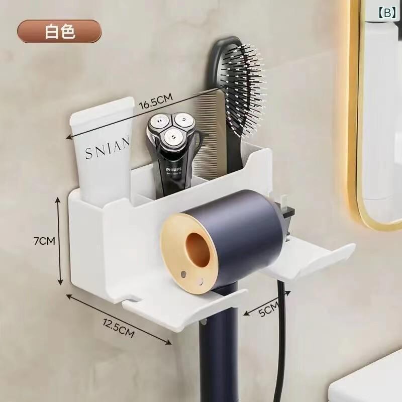 ドライヤーホルダー 浴室 バスルーム 壁掛け ヘアドライヤー 収納ラック 洗面所 強力粘着 スタンド プラスチック製 防水 浮かせる収納 モダン シンプル ホワイト ブラック